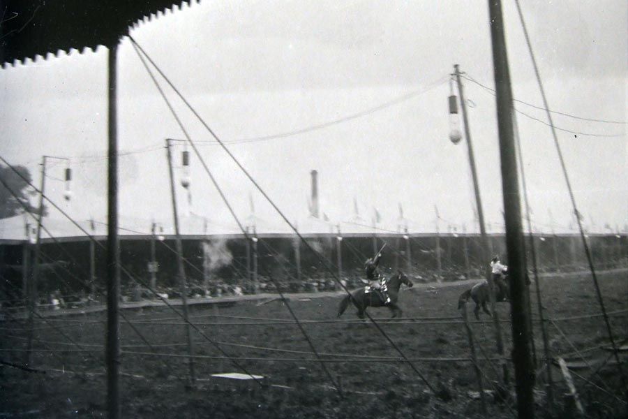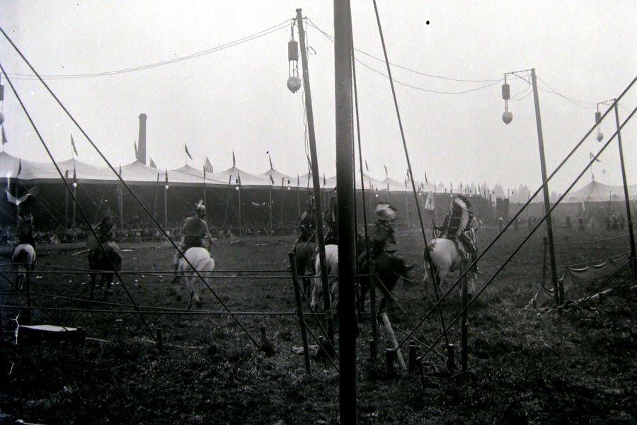 Dans ce vaste ensemble documentaire, quelques pépites sont parfois surprenantes. Le scanner met au jour l’image des plaques de verre jusque-là demeurées mystérieuses : surgit ainsi, au milieu d’une arène, un cavalier, fusil à la main, saisi en plein mouvement … La légende du cliché indique qu’il s’agit de Buffalo Bill ! La personnification de l’Ouest américain dans les Ardennes ? Comment est-ce possible ? Qui a donc réalisé cette prise de vue ?