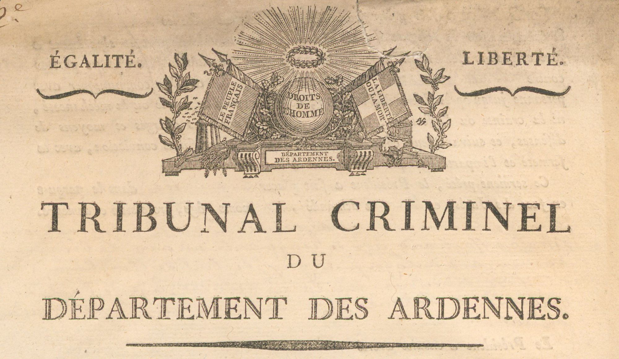 À la suite de ces déclarations, l’affaire est transmise par le Tribunal de Roclibre au Tribunal criminel des Ardennes à Mézières qui décide d’inculper Achart et Gilbert pour introduction et distribution de faux assignats dans l’enceinte du territoire de la République.