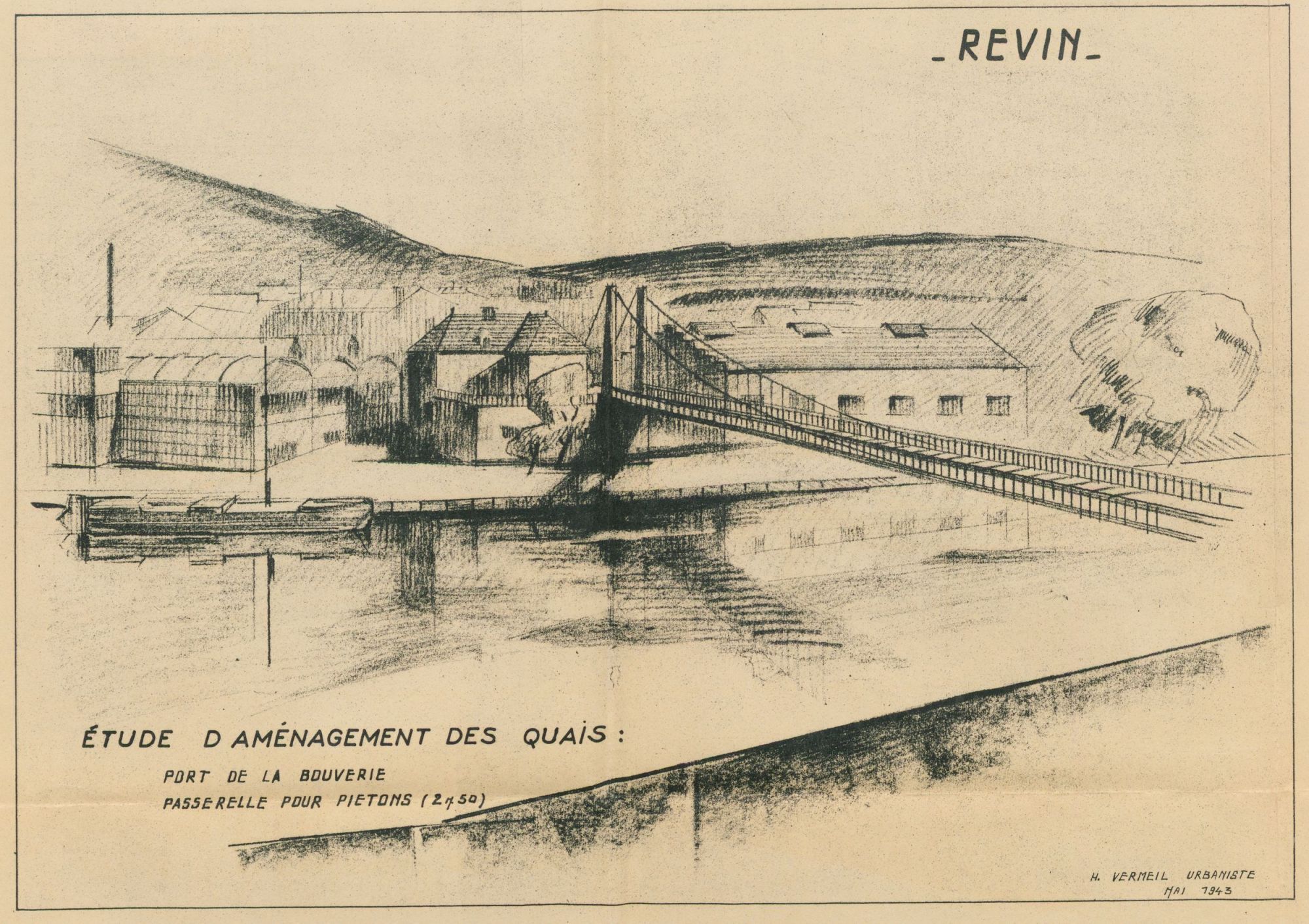 Dans son projet pour Revin, Henri Vermeil ne se contente pas de reconstruire, il repense complètement la ville. Il veut créer et agrandir des places, élargir des routes, développer le port, construire de nouvelles écoles et de nouvelles installations sportives. Il réalise dans ce but de nombreux plans et esquisses (passerelle piétonne à la Bouverie, traverse de Revin, rampe d’accès au pont…)