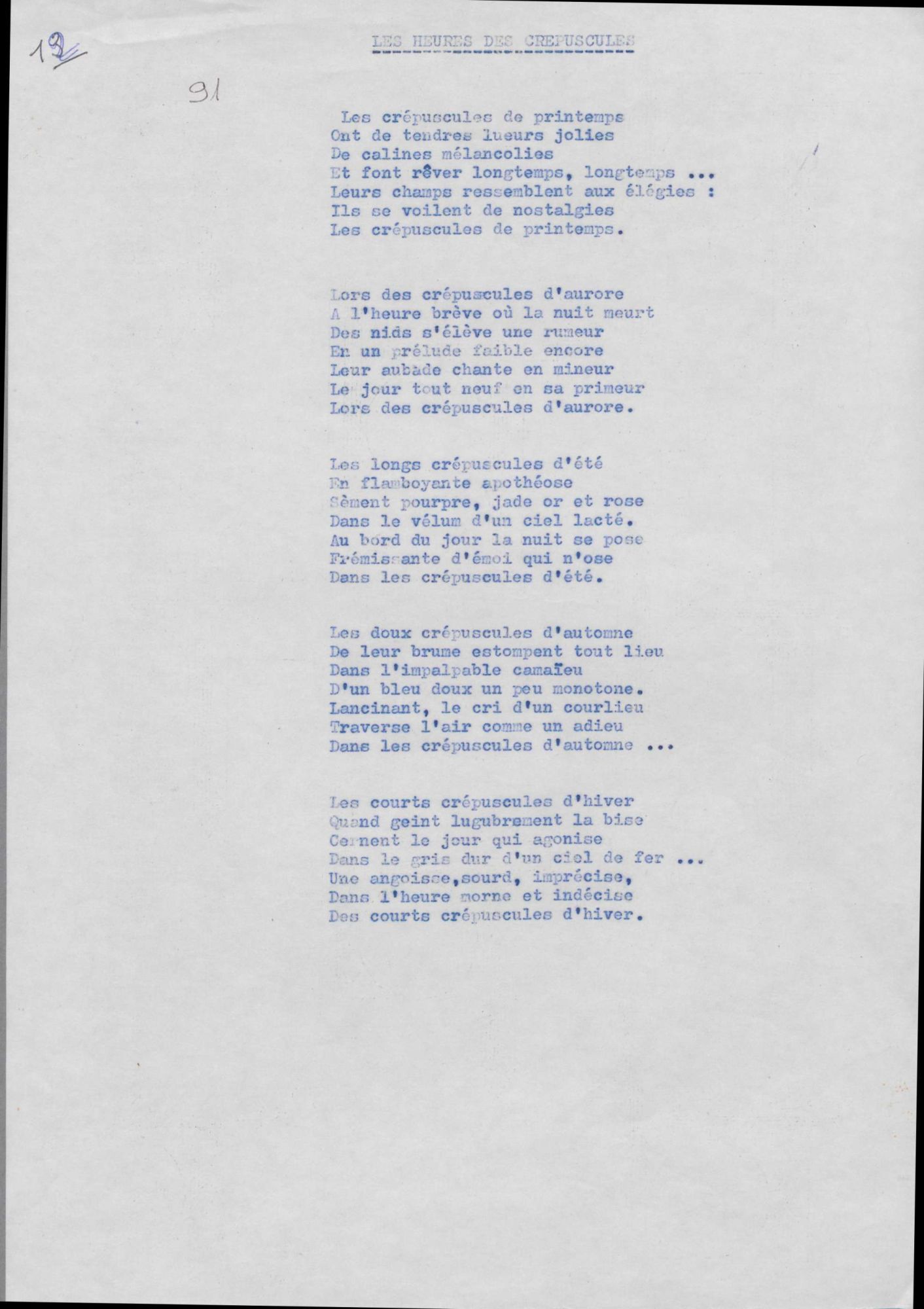 Enfin, la présence de 31 poèmes inédits achève de faire de ce fonds un sujet d’étude très intéressant. Ils couvrent les mêmes thèmes et nous ne résistons pas au plaisir de vous en offrir un : Les heures des crépuscules.