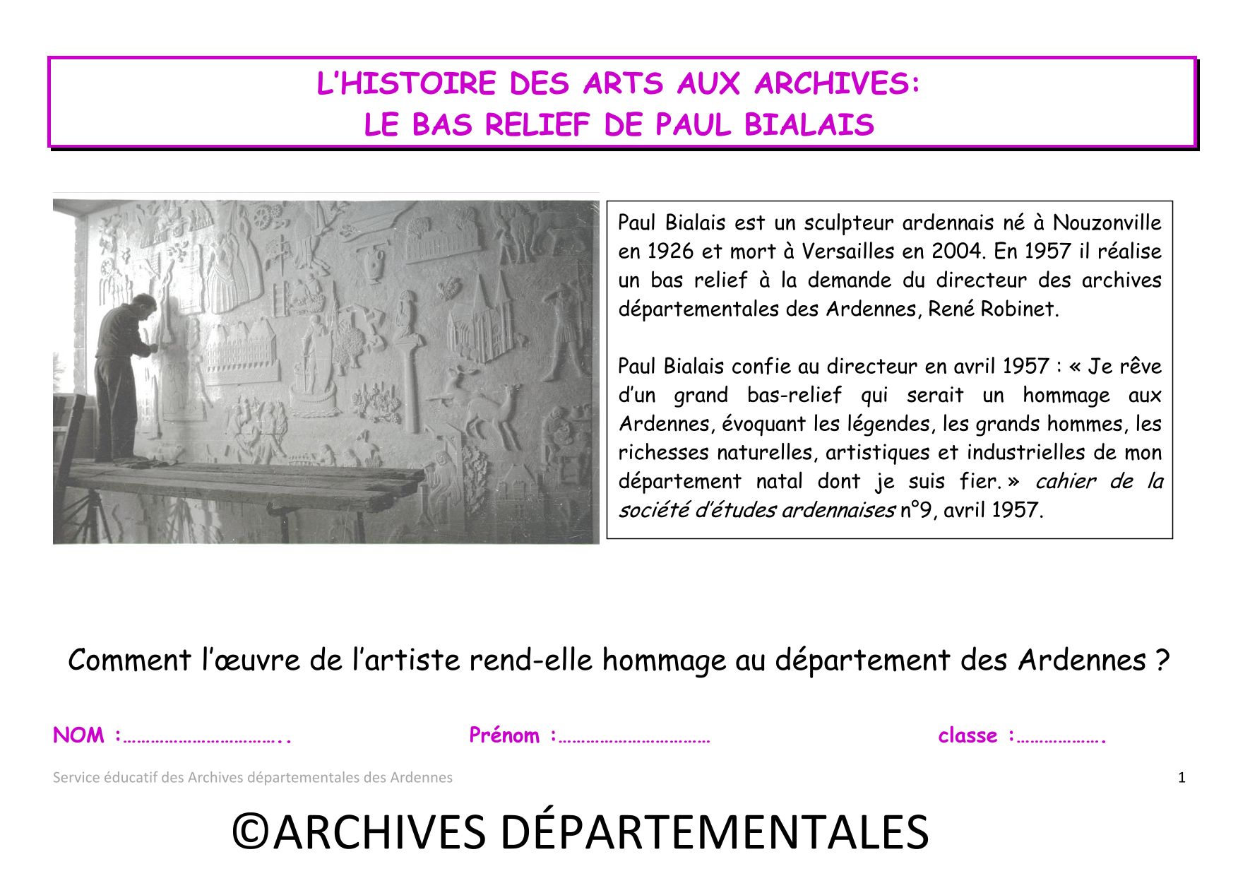 Histoire des Arts "Tu veux ma photo" Les élèves étudient des portraits de la fin du XIX°S - début XX°S. Ils apprennent à présenter, décrire et analyser une photographie puis créent leur galerie de portraits. Atelier (932.8 Ko) Histoire des Arts'dennes : le relief de Paul Bialais Cette oeuvre réalisée en 1957 permet aux élèves de découvrir la diversité du patrimoine ardennais (nature, légendes, édifices, industries...) Atelier (889.9 Ko)