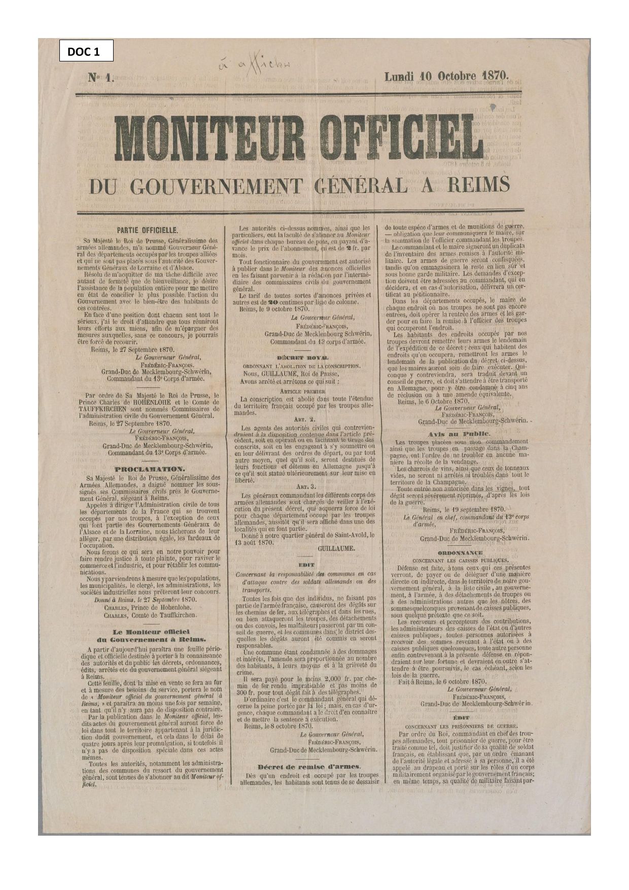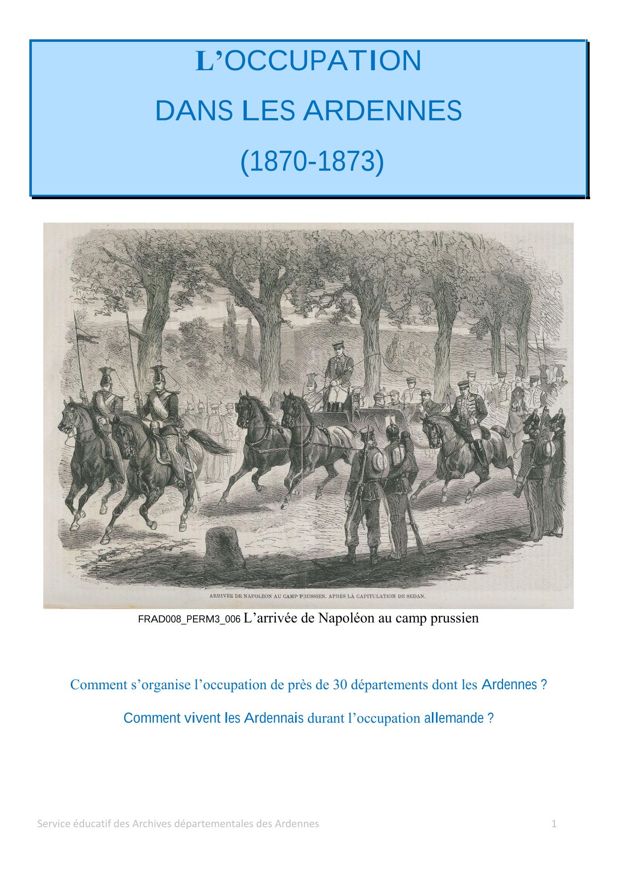 La Guerre de 1870 Après la défaite du 2 septembre 1870, les Ardennes sont occupées par l'armée prussienne. Comment s'est organisée la vie quotidienne alors ? Atelier (1.1 Mo) Documents (4.8 Mo)