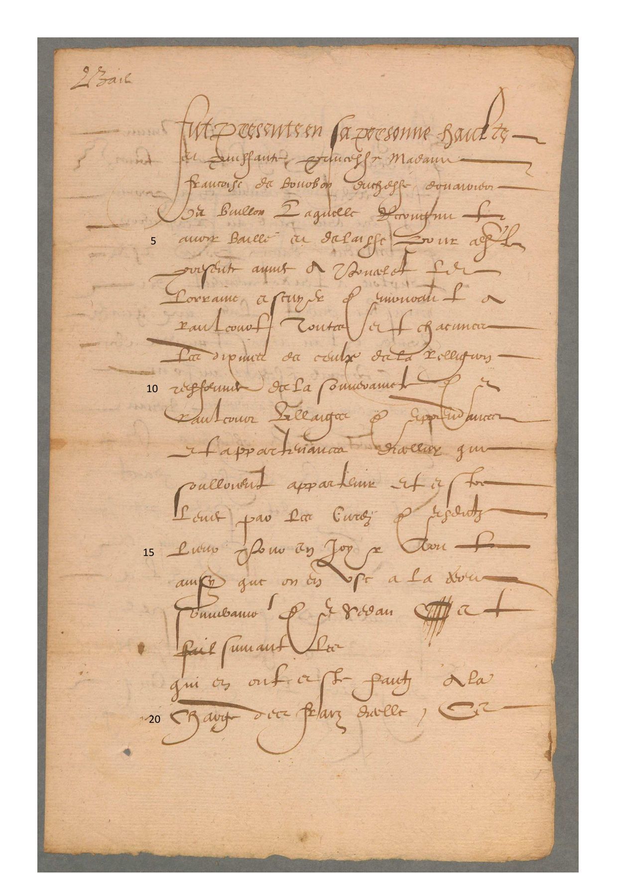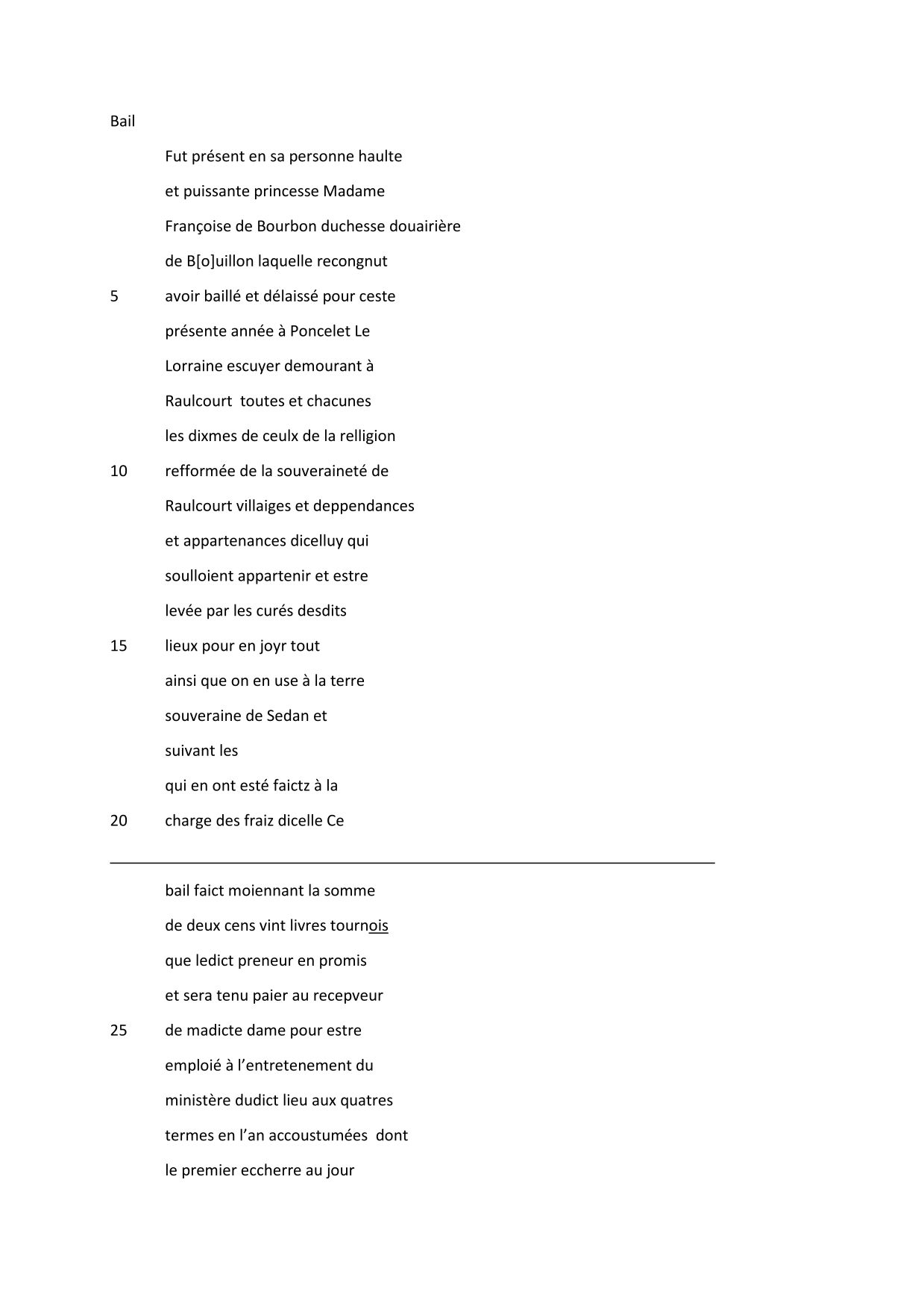 Bail des dîmes protestantes de la souveraineté de Raucourt par Françoise de Bourbon (1579)