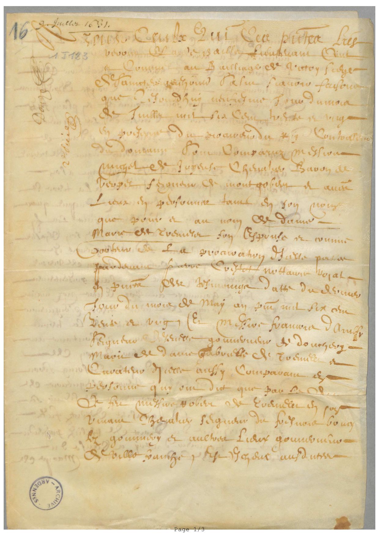 Foi et hommage rendus par Michel de Joyeuse, baron de Verpel (1631)