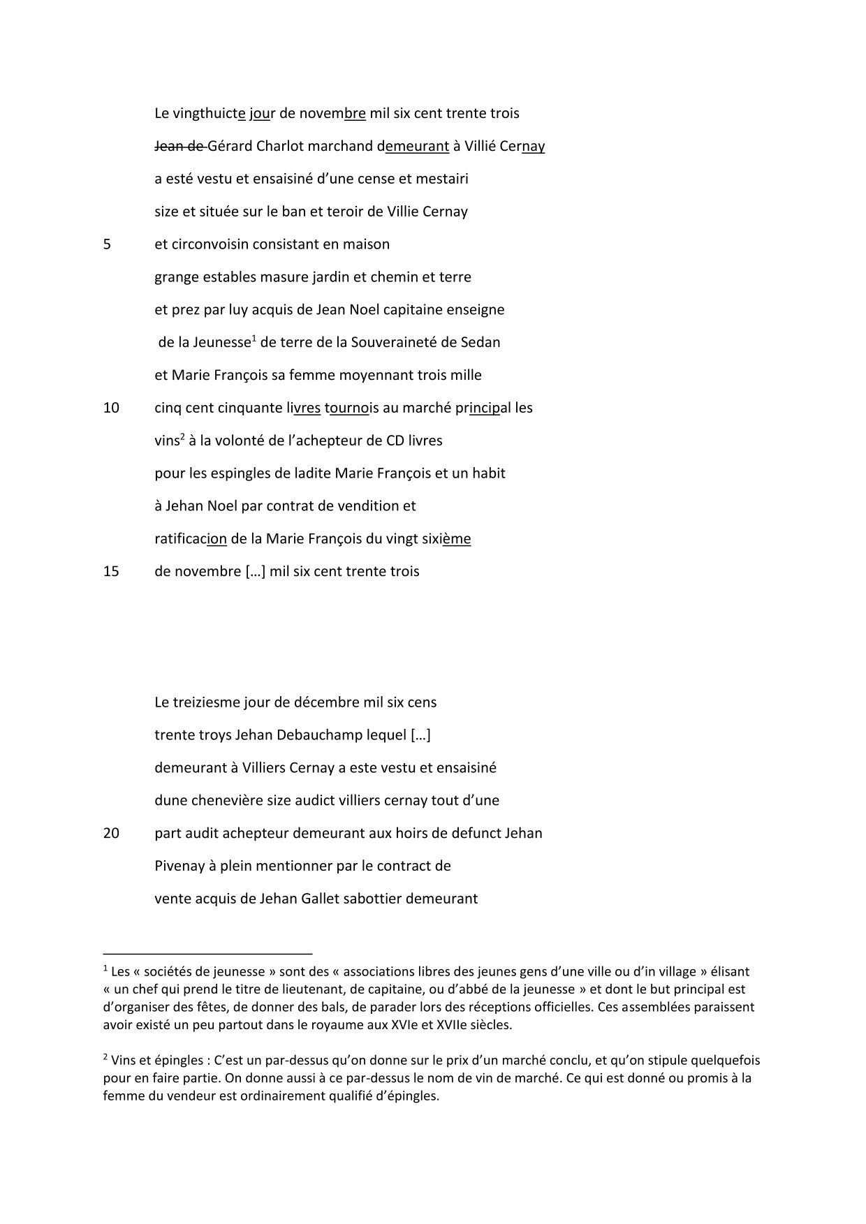 Registre d’ensaisinement : Lors des mutations de propriété, le seigneur foncier fait enregistrer les contrats dans des registres d'ensaisinement (conservés aux Archives nationales dans la série S ou la sous-série LL pour les censives ecclésiastiques et dans la série P pour le domaine du roi). Cet enregistrement comporte le nom de l'acquéreur, sa qualité, son adresse ; le nom du vendeur ; le nom du notaire qui a instrumenté la vente ; la date de la vente ; une description succincte du bien vendu ; le montant de la transaction et celui de l'ensaisinement perçu par le seigneur foncier.