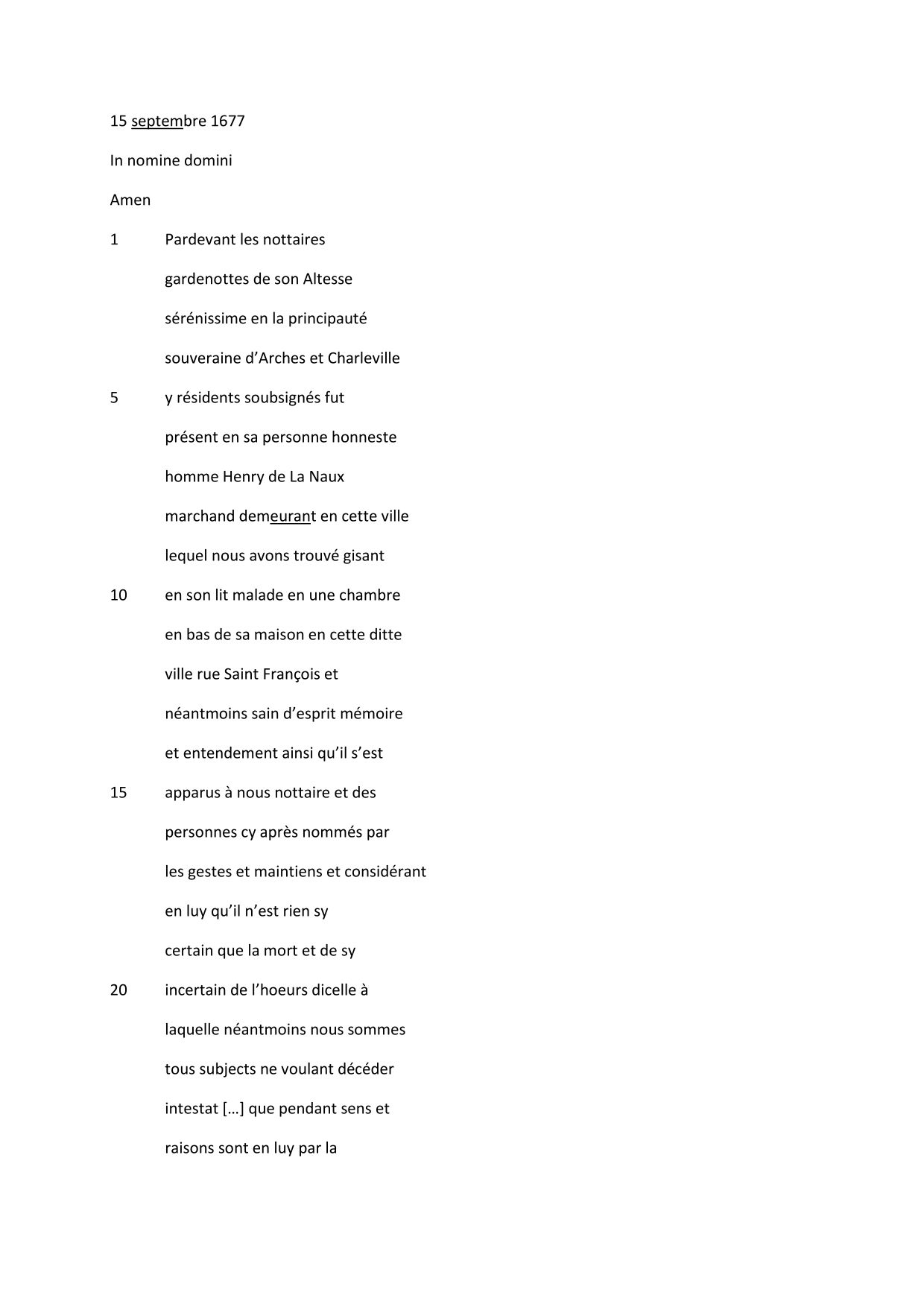 Les dernières volontés d'un marchand de Charleville sur son lit de mort