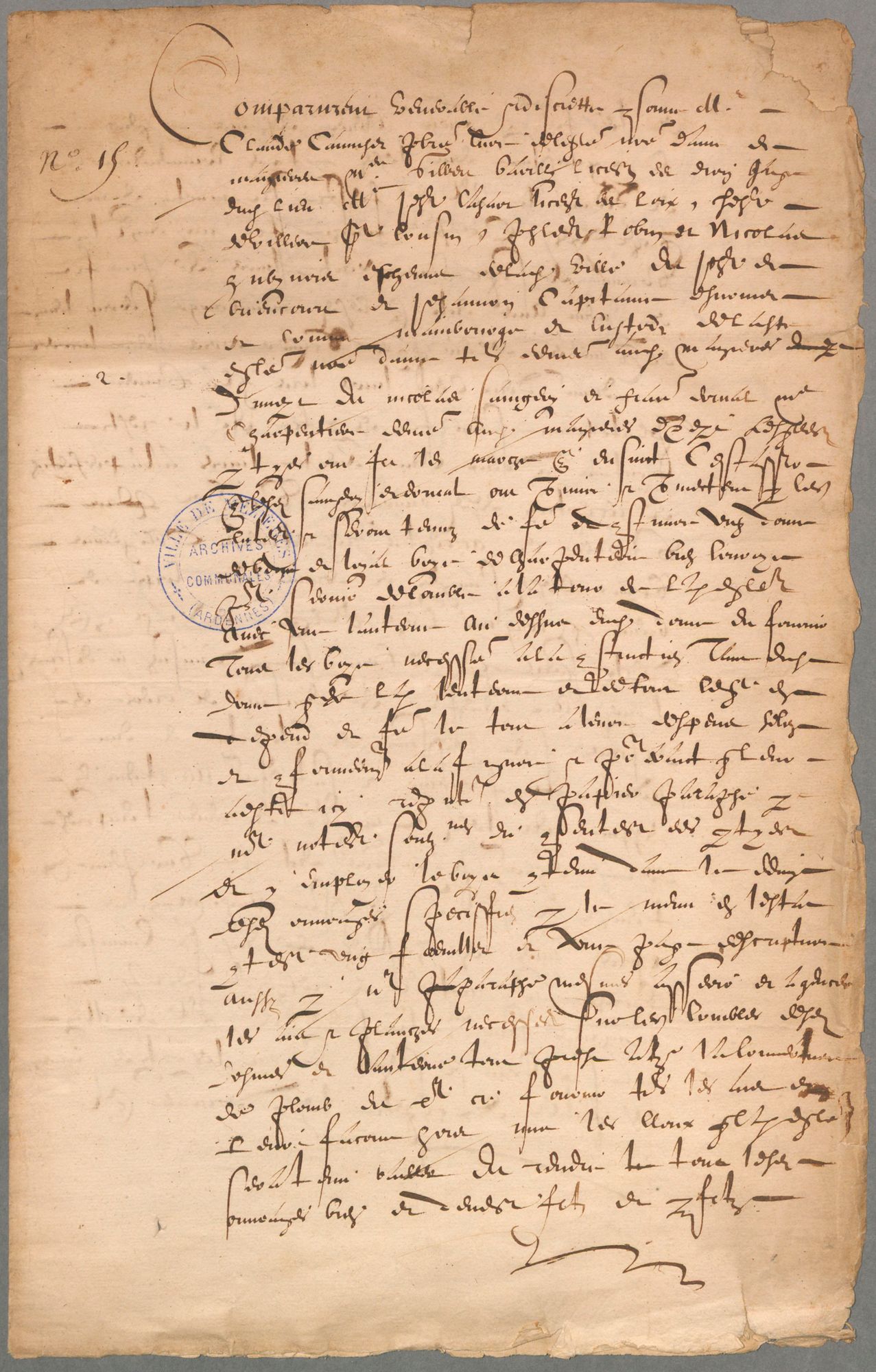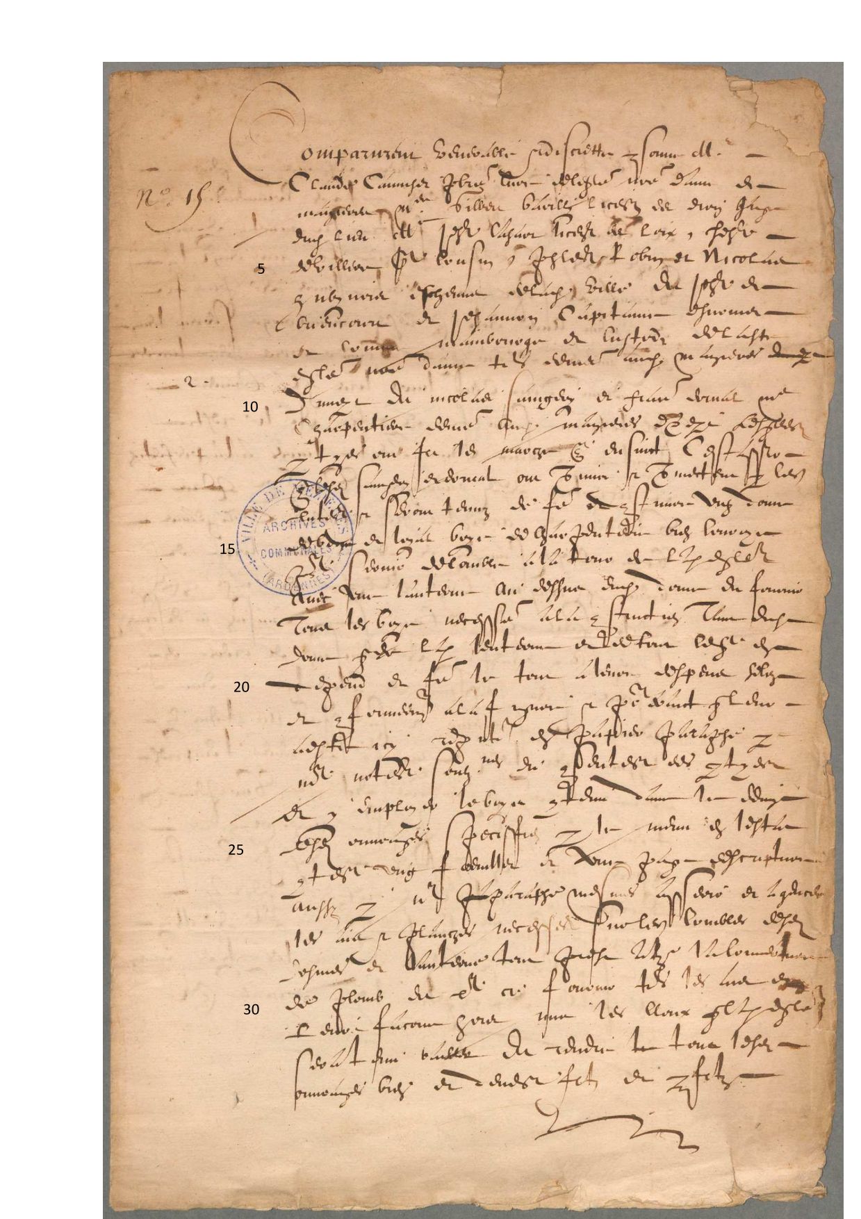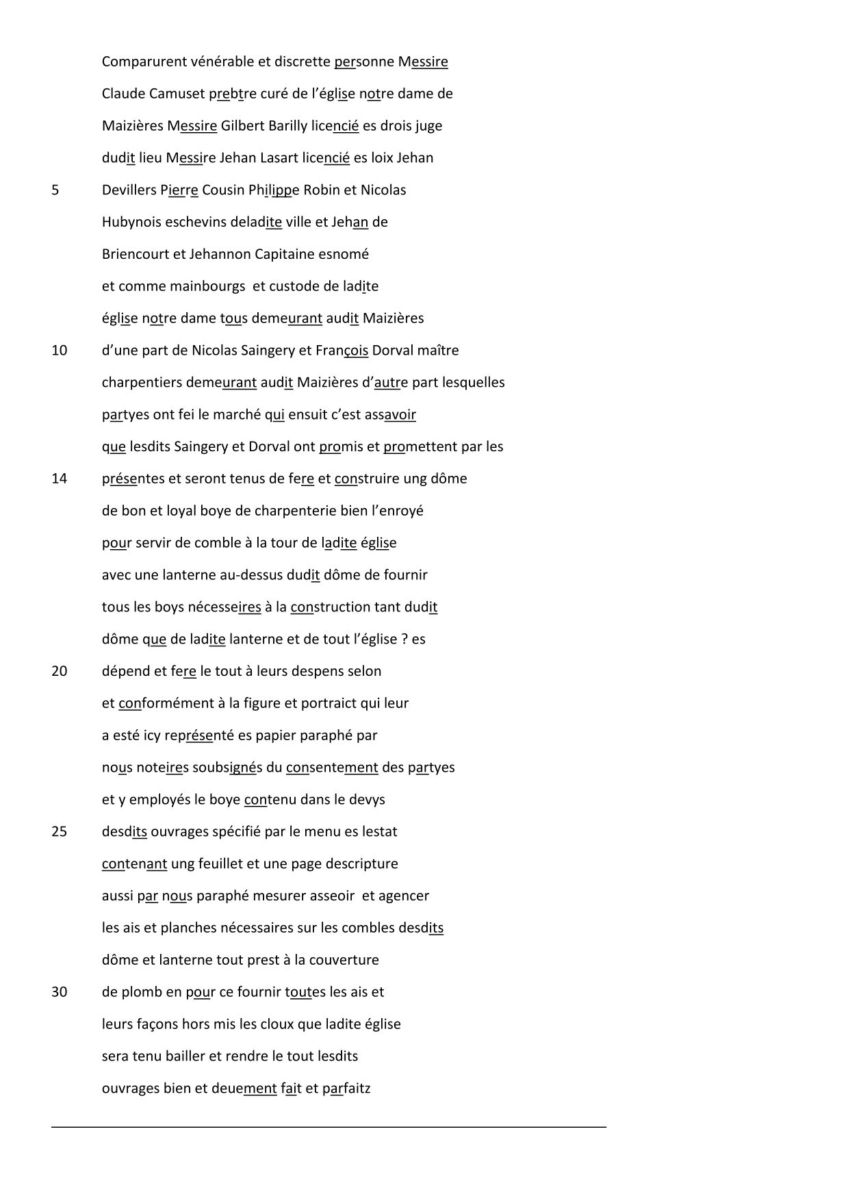 Marché pour la construction de la charpente du dôme du clocher de l'église de Mézières, 1608
