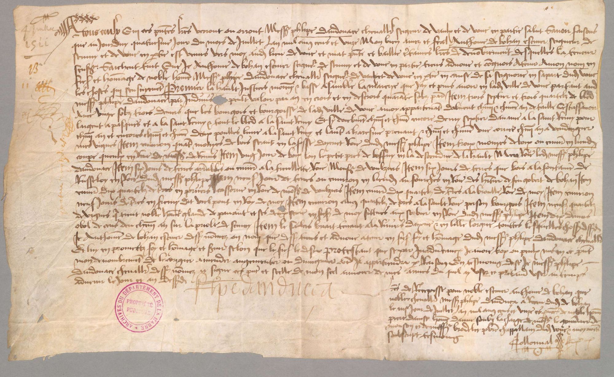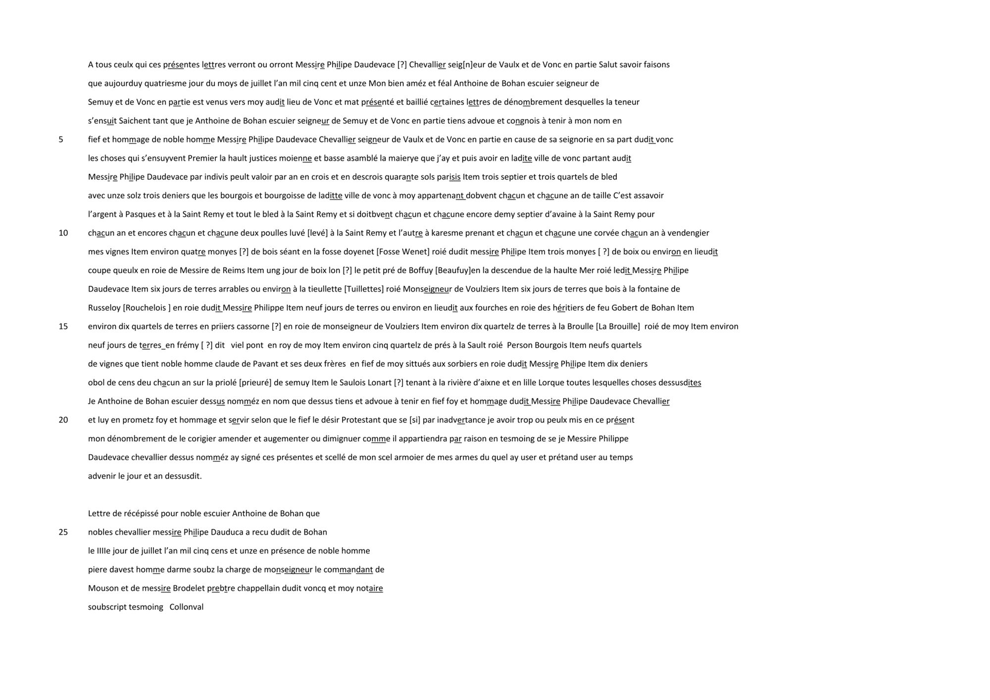 Dénombrement rendu par Antoine de Bohan pour une partie de la seigneurie de Voncq. (1511)