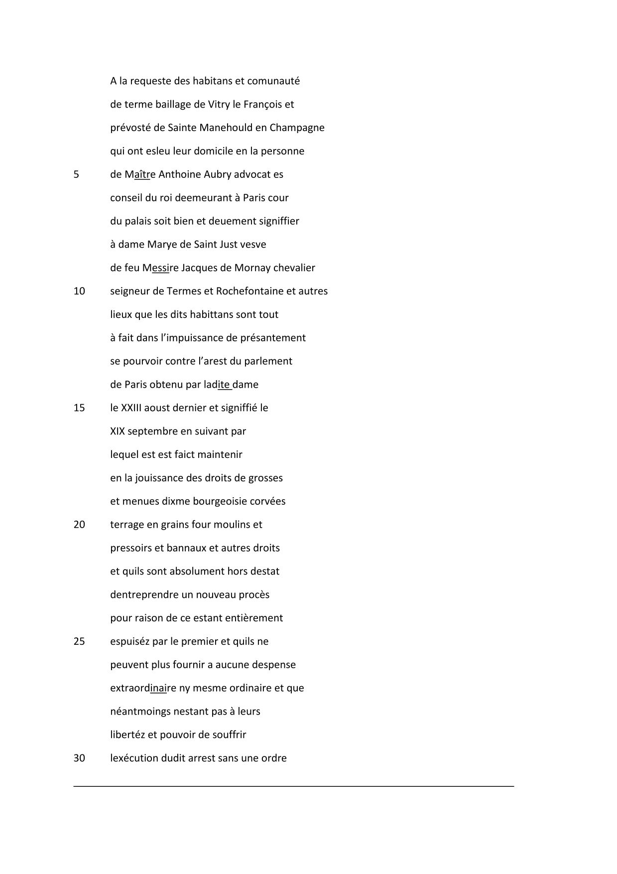 Pièce de procédure opposant Marie de Saint-Just, seigneur de Termes, aux habitants de Termes. (1675)