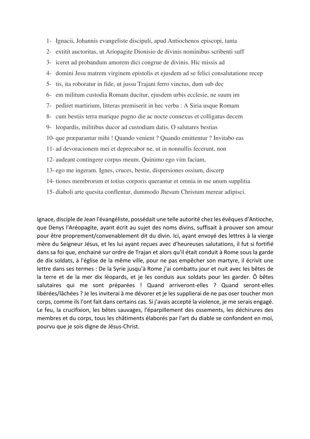 Texte sur le martyre d'Ignace