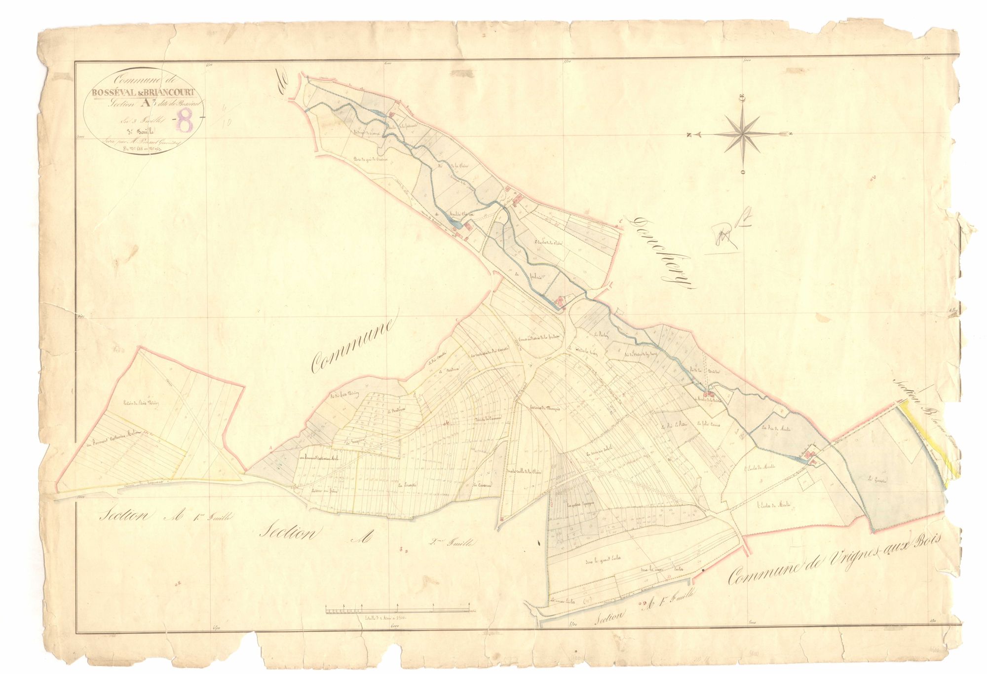 Commune Bosseval-et-Briancourt Type de plan Parcellaire Section et numéro de feuille A3 Nom de la section Bosseval Date [1845]