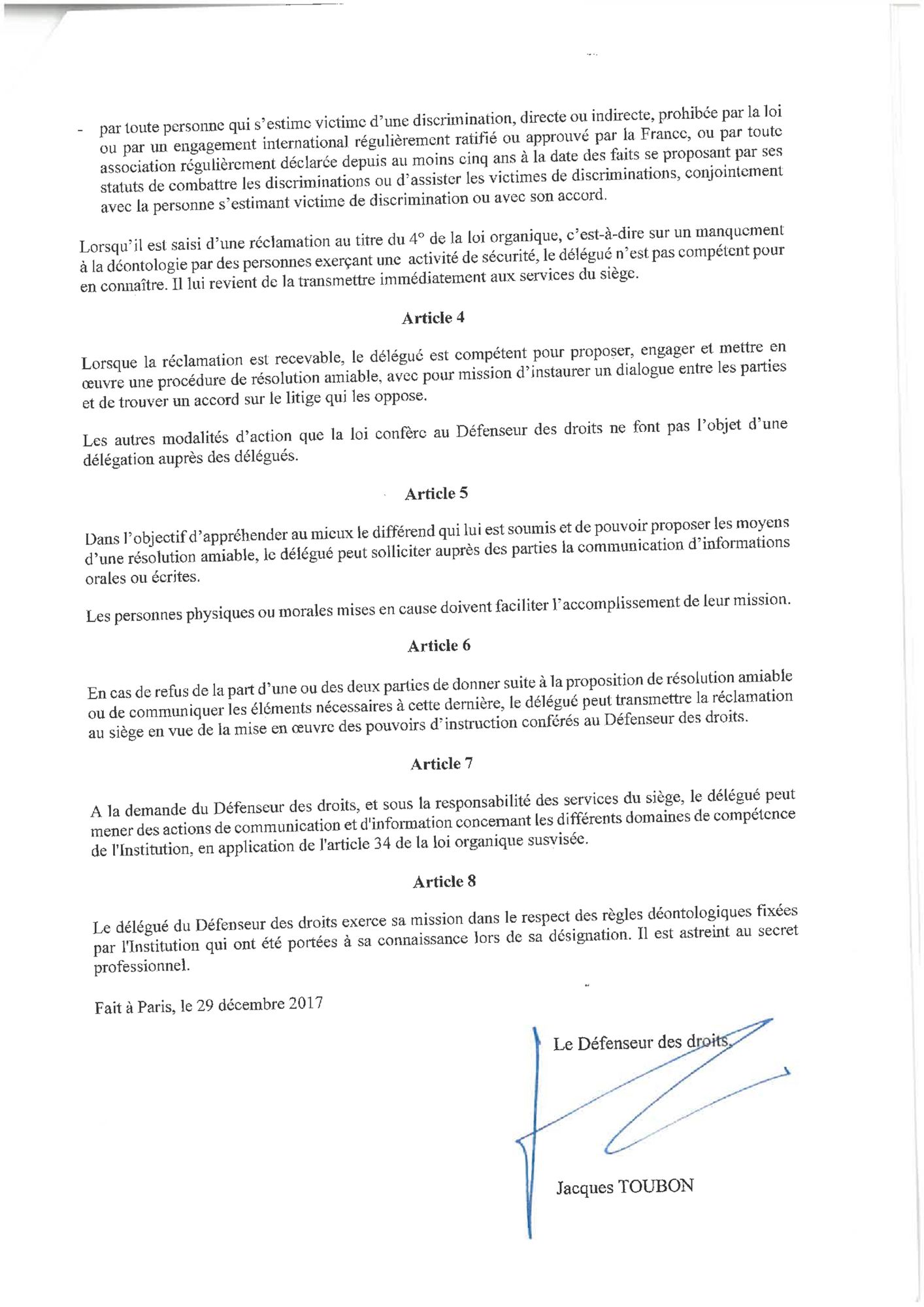 On peut noter la spécificité des délégués intervenant en milieu carcéral à partir de 2005, dans le cadre d'un partenariat avec le ministère de la Justice. Les délégués jouaient un rôle d'écoute, d'orientation, de médiation entre les citoyens et les administrations, s'efforçant de parvenir à des règlements à l'amiable.
