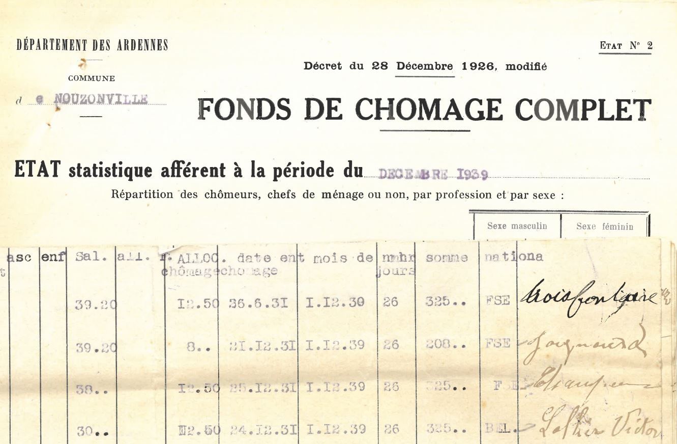 Le 22 juin 1942 la préfecture des Ardennes verse aux Archives départementales un ensemble de dossiers intitulé « Chômage ». Mal identifiés et non inventoriés, ces documents viennent de faire l’objet d’un classement et d’un inventaire détaillé.