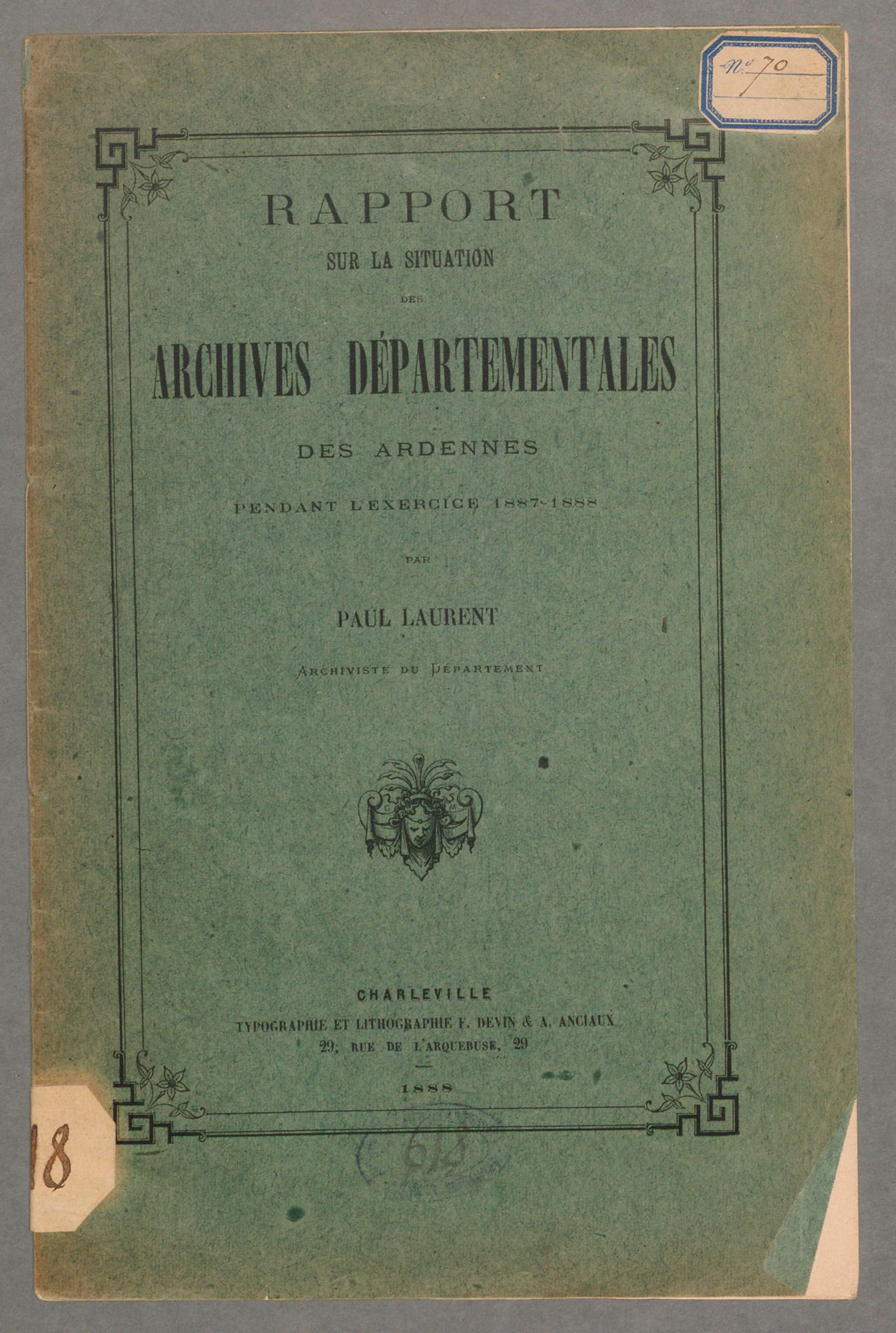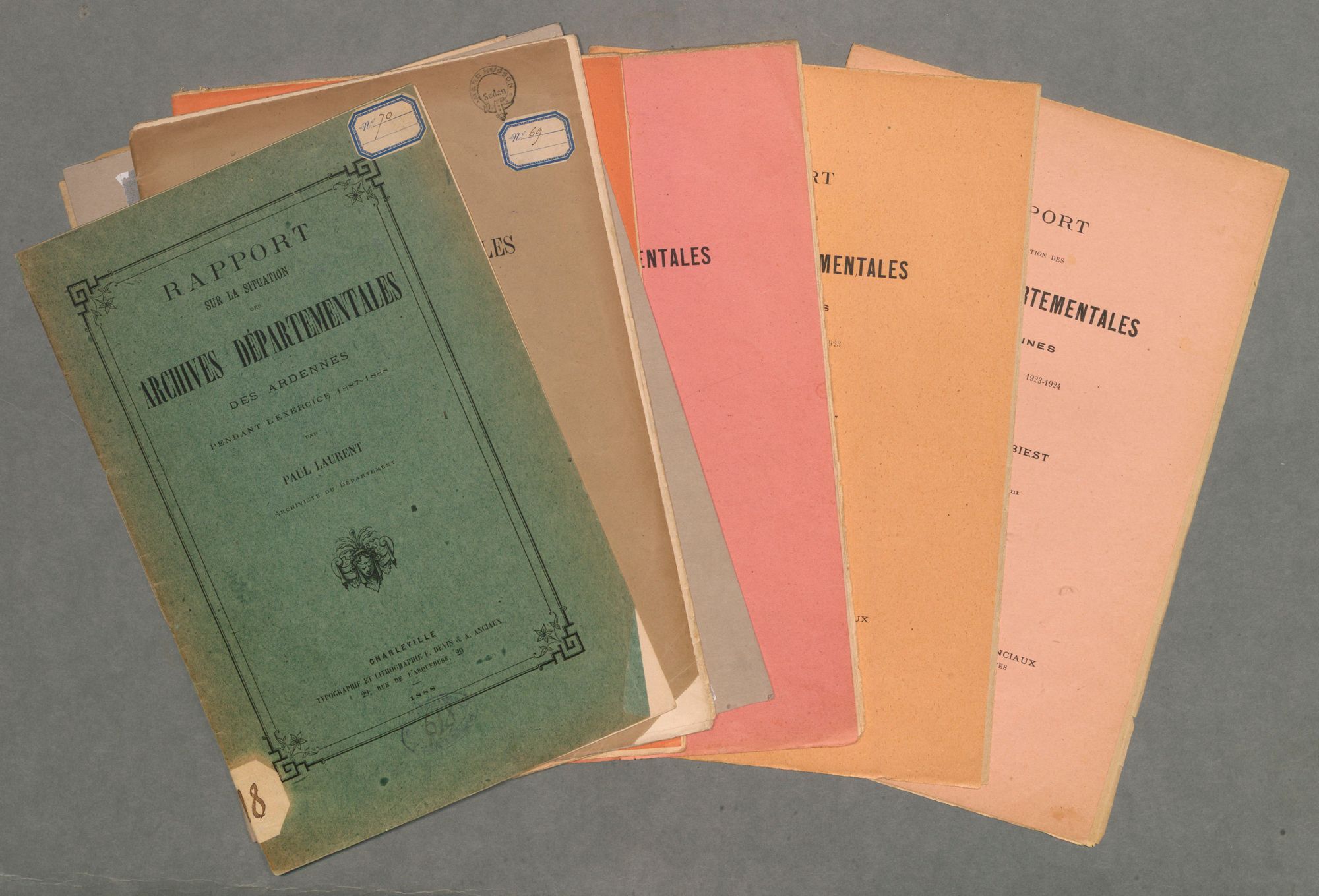 Les Archives départementales ont mis en accès libre l’ensemble des rapports annuels du service rédigés depuis 1874. Les rapports annuels sont rédigés par les directeurs successifs pour rendre compte aux tutelles de l’activité de chaque année écoulée. Ils fournissent par conséquent de précieux renseignements pour comprendre et découvrir, en détails, les missions accomplies et les résultats des efforts fournis par les membres des Archives départementales au service du patrimoine écrit des Ardennes. En outre, ils détaillent des informations tout à fait importantes pour connaître la constitution des fonds disparus en 1940. Ils ont par conséquent été intégralement retranscrits à partir des publications faites dans les procès-verbaux des délibérations du Conseil général (sous-série 1N) puis des tapuscrits conservés dans les archives du service (3T 1, 78W 1 et 2).