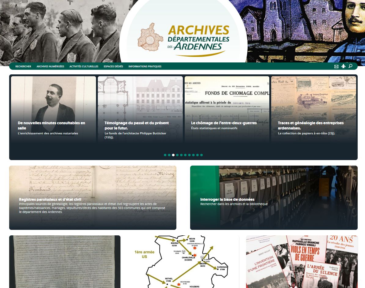 · Enfin, la transcription d’inventaires d’archives anciennes détruites au cours du XXe siècle (Rethel, Château-Porcien, Beaumont-en-Argonne) et l’ensemble des rapports d’activités du service des Archives départementales depuis 1874.