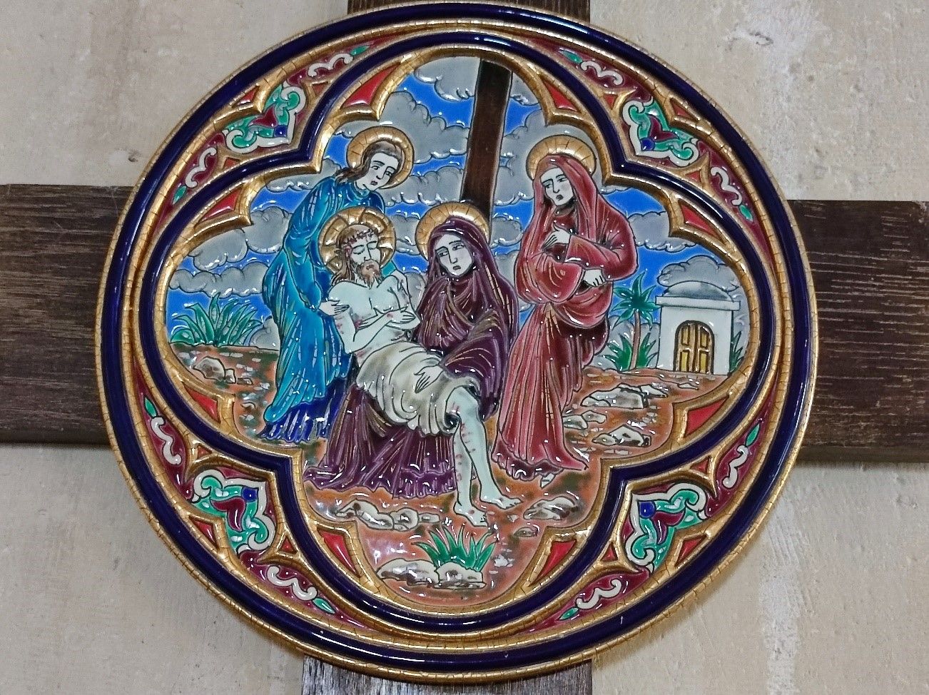 - Le Groupe sculpté du Christ en croix entre deux anges, daté du XVIe siècle, conservé dans l’église Saint-Fiacre de Toges. Ce groupe provient d'une poutre de gloire dans l'ancienne église en bois de Toges qui a été détruite au cours d’un incendie en 1918. Le groupe a toutefois pu être sauvé et conservé jusqu’à nos jours. Il constitue donc un patrimoine rescapé des destructions de la guerre. Ce groupe est complété par deux autres statues : une de la Vierge et une autre de Saint-Jean, datés du XVe siècle.