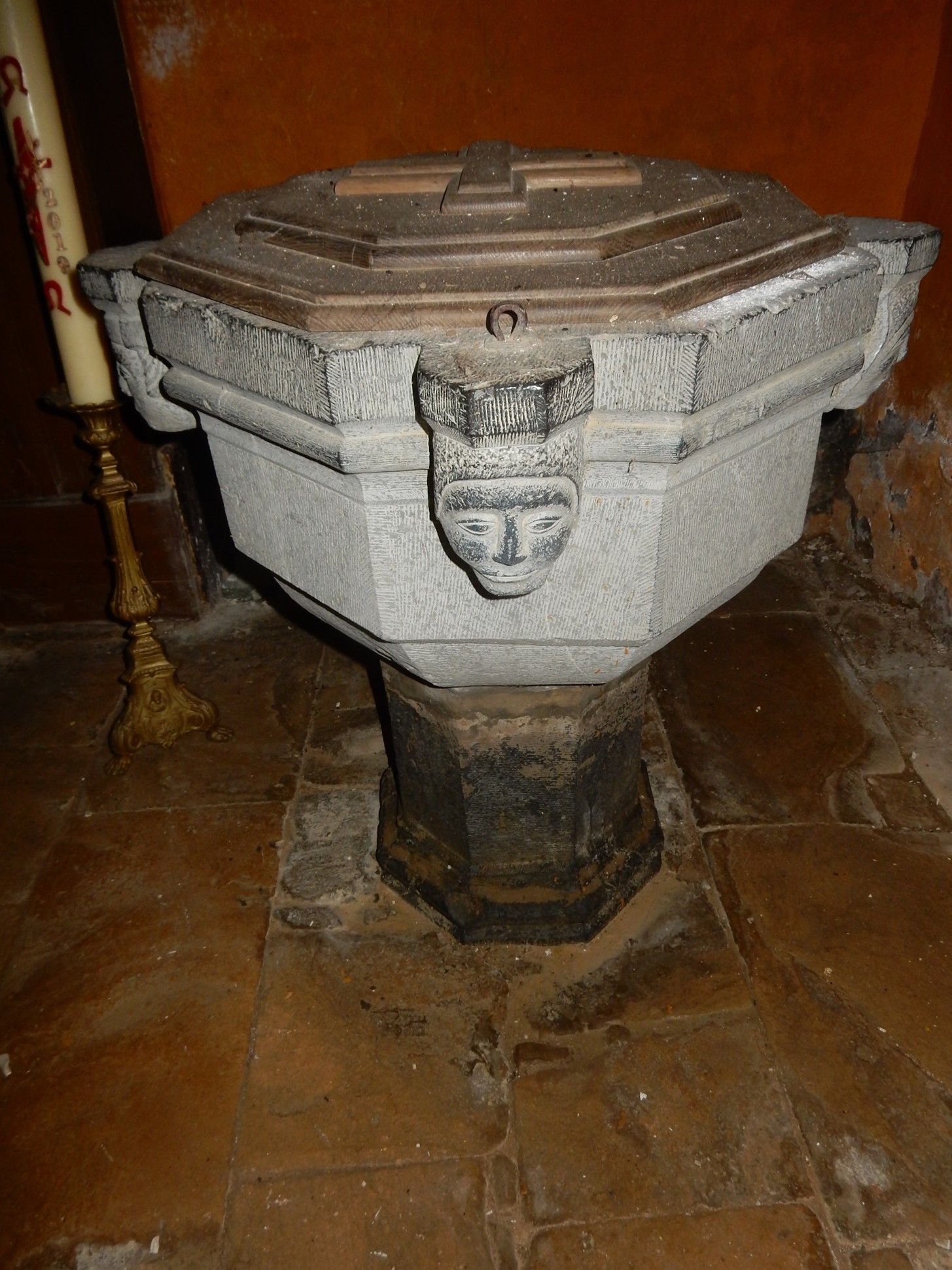 - Les fonts baptismaux, datés du XIIIe-XIVesiècles, de l’église Saint-Nicolas de Bourcq ;
