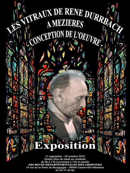 Les Archives départementales présentent du 13 septembre au 29 octobre 2010 une exposition intitulée « Les vitraux de René Dürrbach à Mézières : conception de l'oeuvre ».