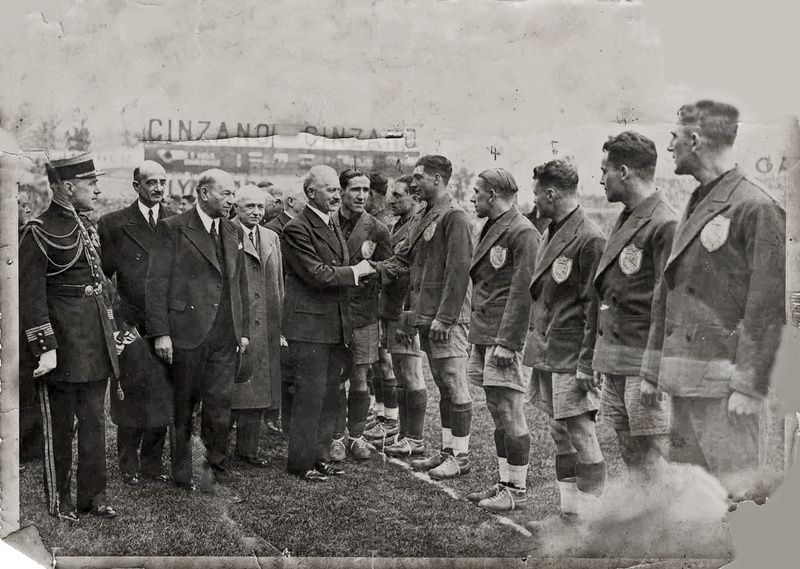Finale de la Coupe de France de football, 3 mai 1936 : présentation des joueurs du Football Club Olympique de Charleville au Président de la République Albert Lebrun 11 janvier 2011