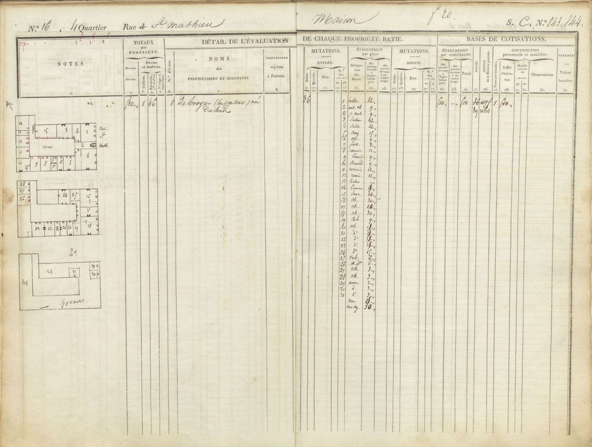 Cette matrice nous apporte donc des informations importantes sur l’aménagement des bâtiments du quartier du Saint-Sépulchre dans la première moitié du XIXe siècle. Elle nous informe également sur les modes de vie des différentes classes sociales, de la comtesse de Broyes dont la demeure comprend 31 pièces dont 10 chambres à celle de la famille Lagneau comportant 4 pièces.