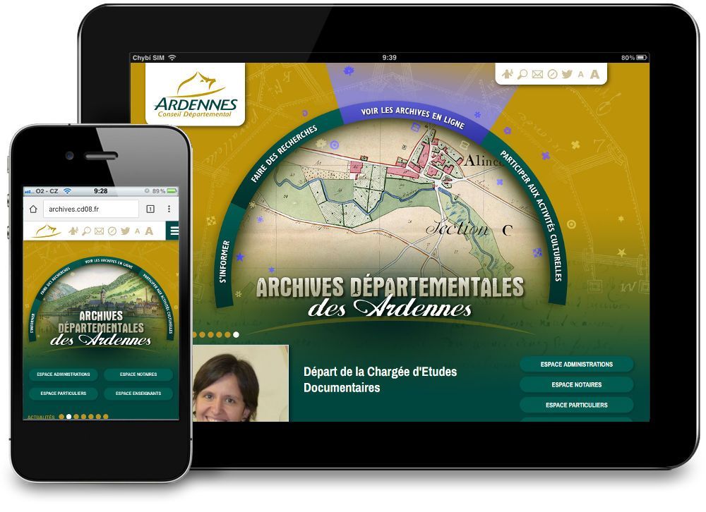 Pour faciliter votre navigation, les Archives départementales viennent de mettre en place le Responsive Design. Il s’agit, en français, d’adapter le site web à tous les écrans, des plus petits aux plus grands. Quelque soit l’appareil que vous utilisez, la visualisation s’adapte à l’écran, facilitant ainsi la lecture par une dimension adéquate et optimale de la fenêtre web sur votre écran (téléphone mobile ou tablette).