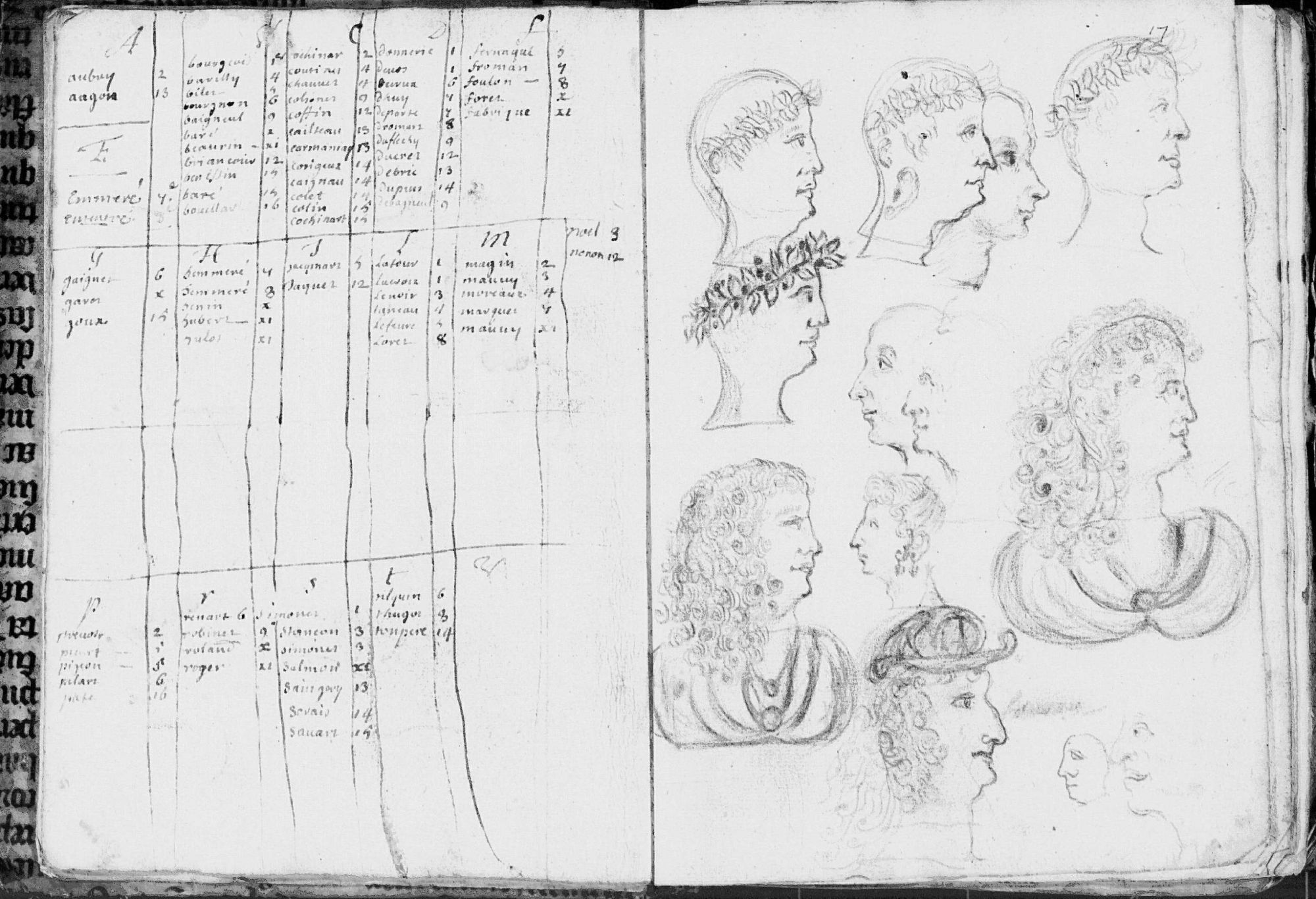 On y voit des femmes coiffées, des têtes d’hommes de profil, sans oublier des essais et des esquisses de dessins non terminés…