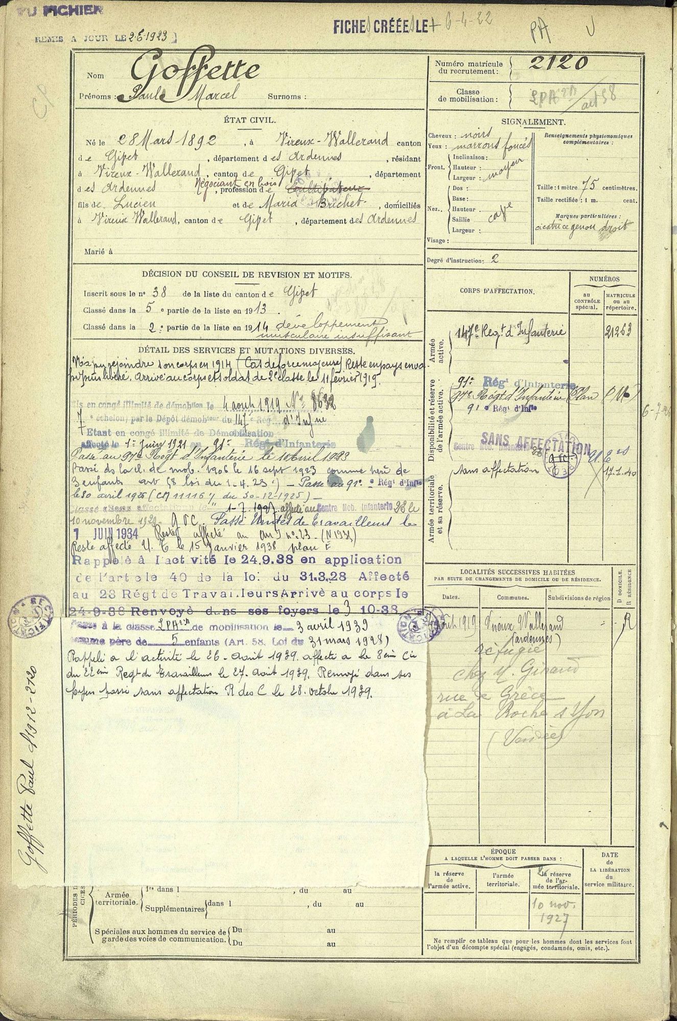 Les registres matricules du recensement militaire en ligne couvrant la période de 1867 à 1921 représentent plus de 177 500 images numérisées par le département et mises en ligne sur le portail archives.cd08.fr.