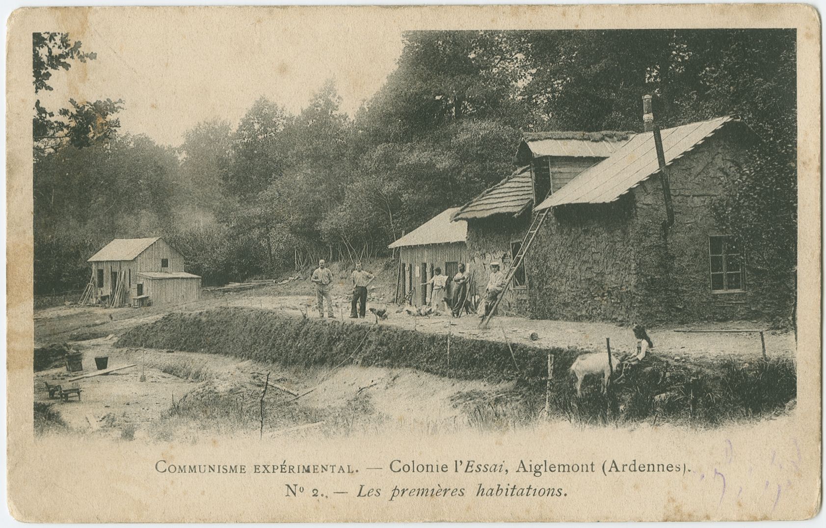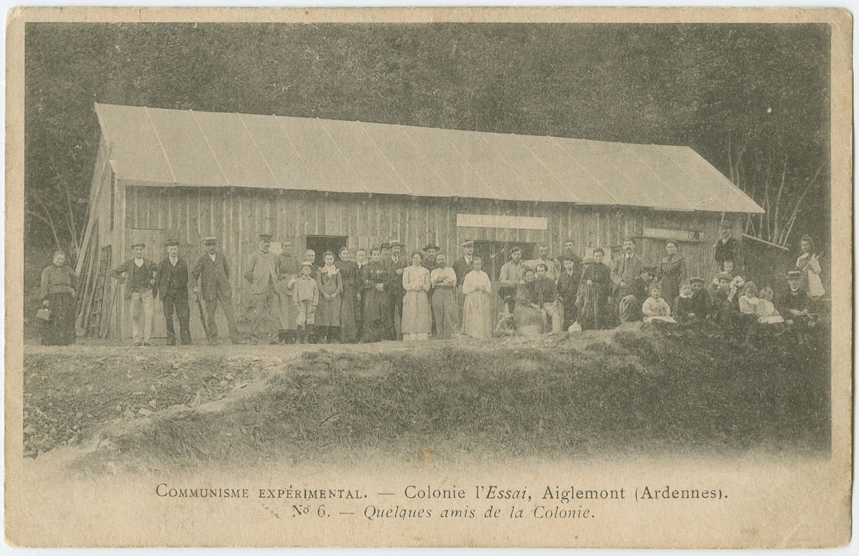 Pour mieux comprendre la démarche ici à l’œuvre, des travaux pourraient être menés sur la terminologie des titres donnés aux cartes postales. Celles-ci portent trois mentions : « Colonie libertaire d’Aiglemont » ; « la colonie l’essai » ou encore « Communisme expérimental ».