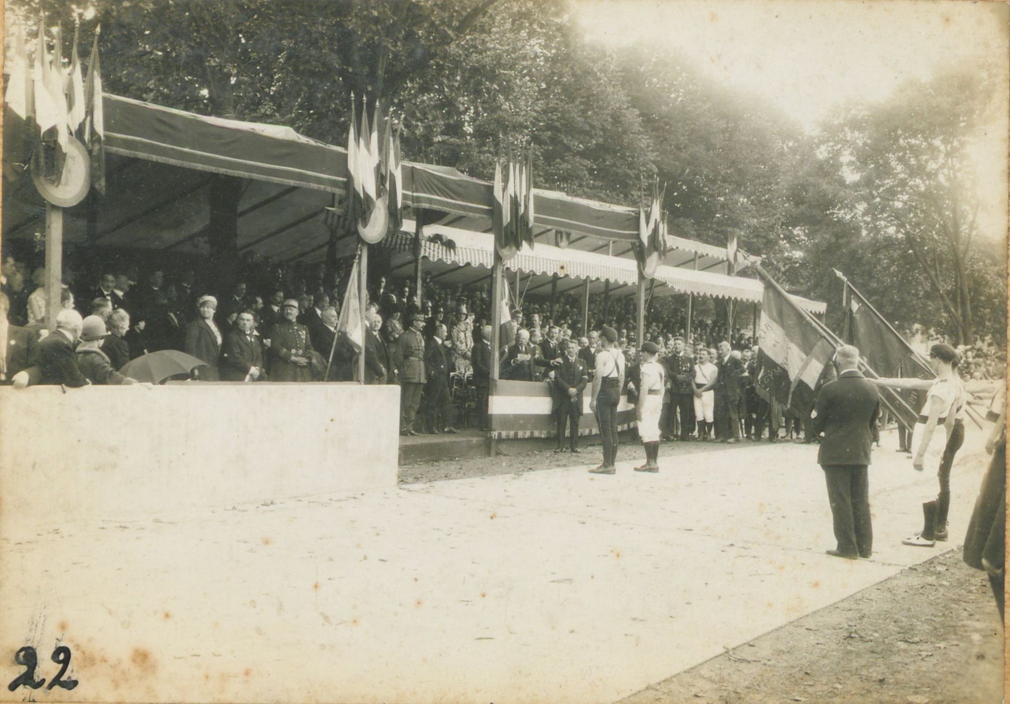 Les Archives départementales des Ardennes viennent de recevoir en don trente-quatre photographies d’une manifestation festive et sportive au vélodrome de Charleville entre les deux-guerres. Situé sur le site actuel du stade du Petit-Bois, ce vélodrome voit, lors de cet événement, se dérouler de nombreuses épreuves sportives : match de football, compétitions d’athlétisme, démonstrations de gymnastiques…