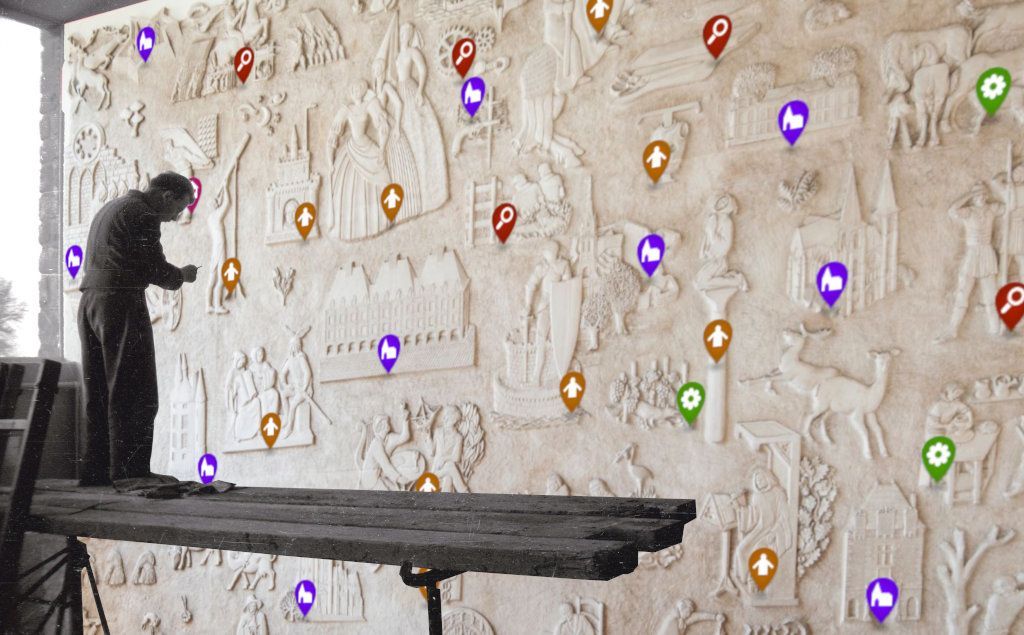 Présent dans le hall du bâtiment des Archives départementales dès ses origines, la sculpture de Paul Bialais – qui, paradoxalement ne porte pas de nom – a fait l’objet d’une publication à l’occasion du soixantième anniversaire du bâtiment en 2017. Aujourd’hui, nous vous proposons de découvrir cette sculpture directement en ligne. En cliquant sur les icones thématiques, vous aurez accès aux différentes explications des quelque 50 motifs représentés.