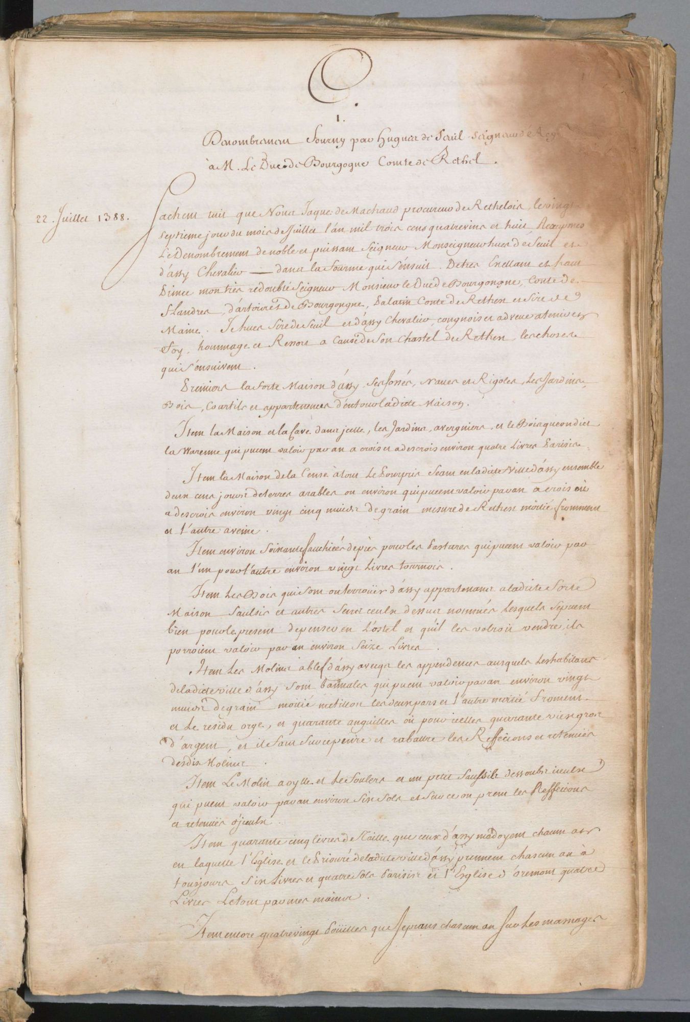 L’exemple du 1 J 251. - Cartulaire et inventaire des titres de la seigneurie d'Acy et d'Avançon et marquisat de Romance, 1322-1783, XVIIIe siècle (1 volume de XIV-400 pages).