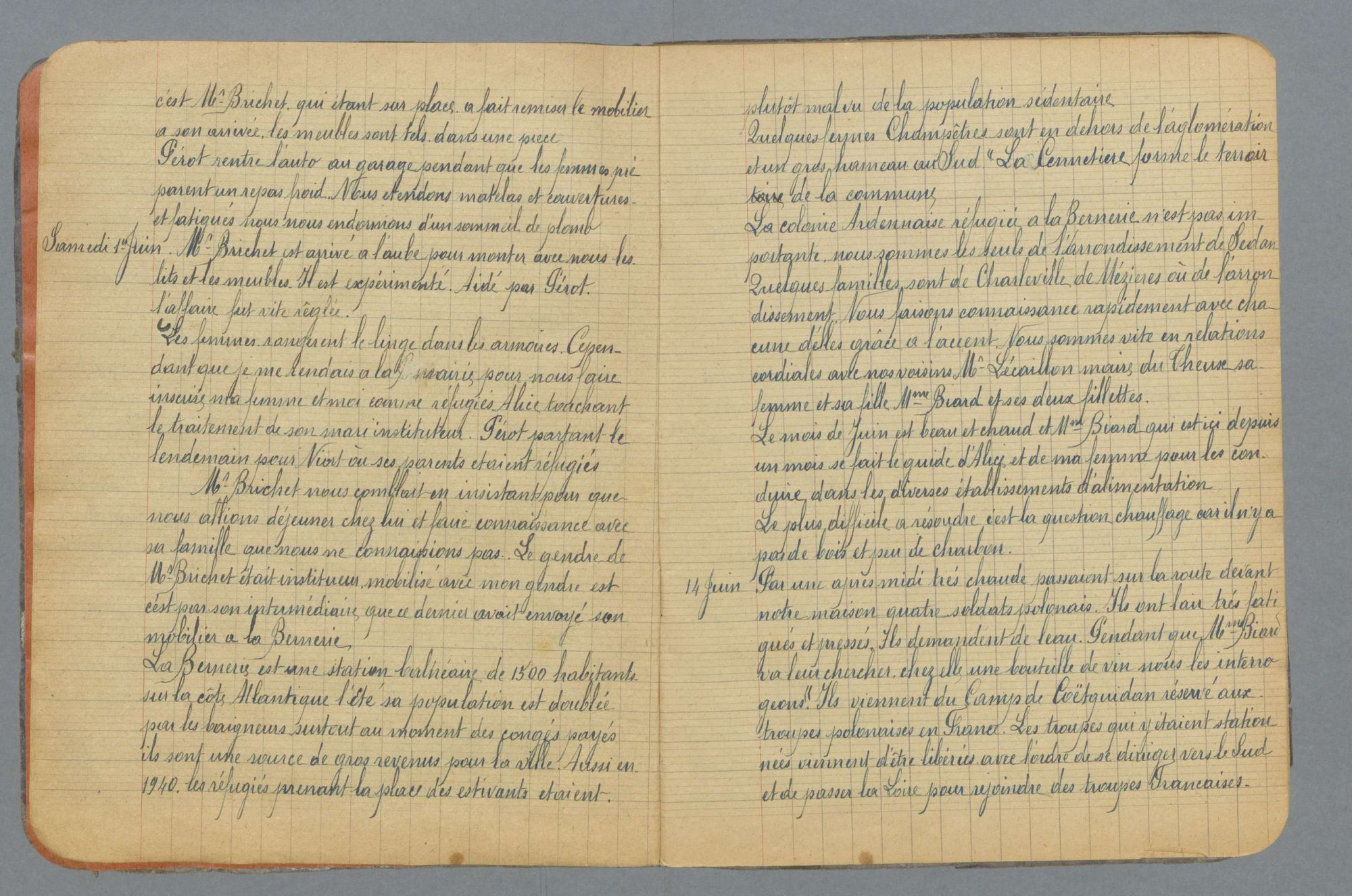 Leur arrivée comme réfugiés ardennais à la Bernerie est racontée ci-dessous. Merci encore à Gérard Blondeau pour ses transcriptions.