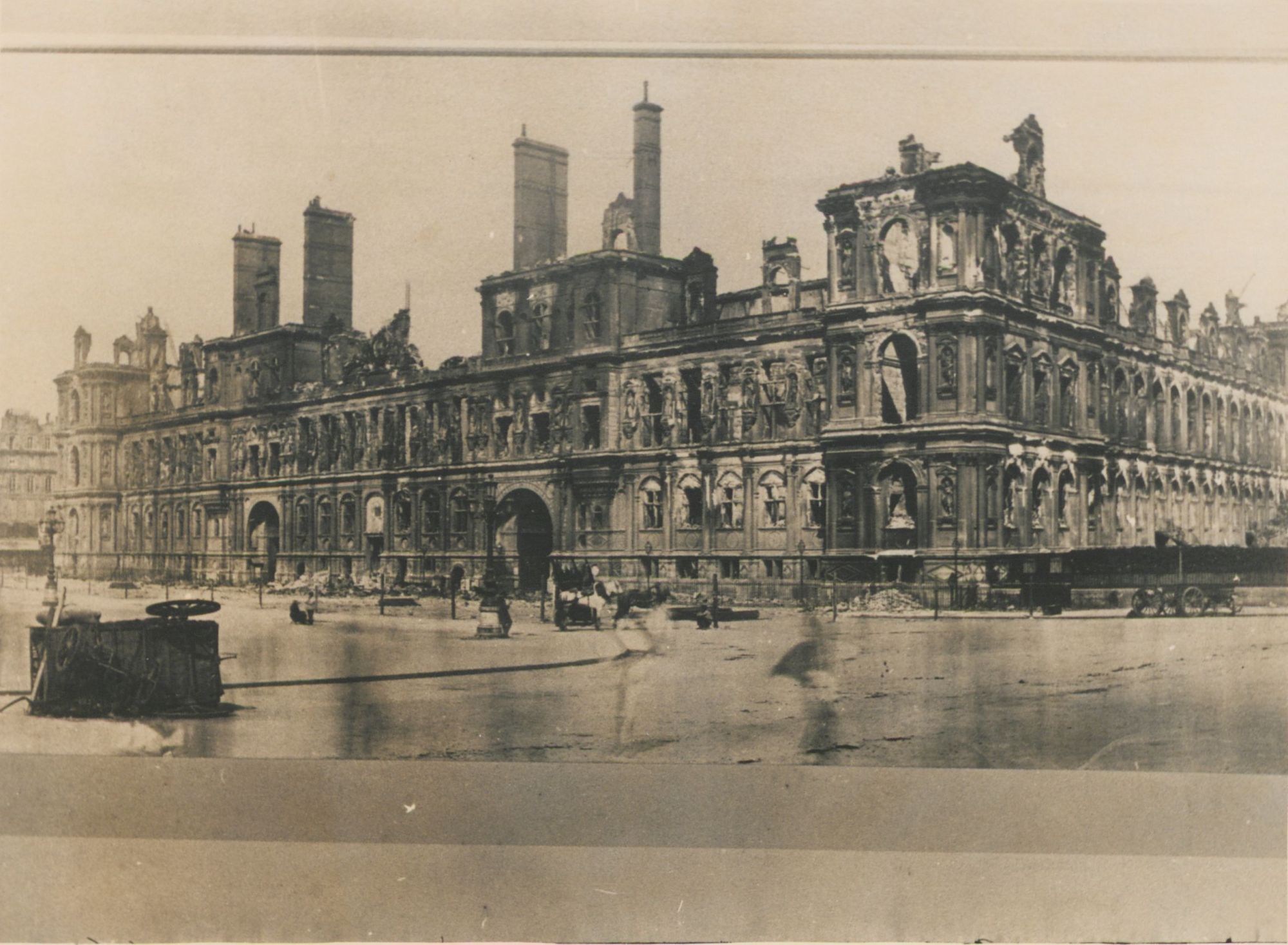 Le 21 mai, l’armée versaillaise entre dans Paris. C’est le début de la « Semaine sanglante » pendant laquelle ont lieu les combats les plus meurtriers, des exécutions sommaires et l’incendie de nombreux bâtiments publics. Une proclamation de Thiers du 25 mai 1871 témoigne de ces événements en ces termes : « Nous sommes maîtres de Paris sauf une très petite partie qui sera occupée ce matin. Les Tuileries sont en cendres, le Louvre est sauvé, la partie du ministère des finances qui longe la rue de Rivoli a été incendié, le palais du quai d’Orsay dans lequel siègent le Conseil d’état et la Cour des comptes a été incendié également, tel est l’état dans lequel Paris nous est livré par les scélérats qui l’opprimaient… le sol de Paris est jonché de leurs cadavres… ».