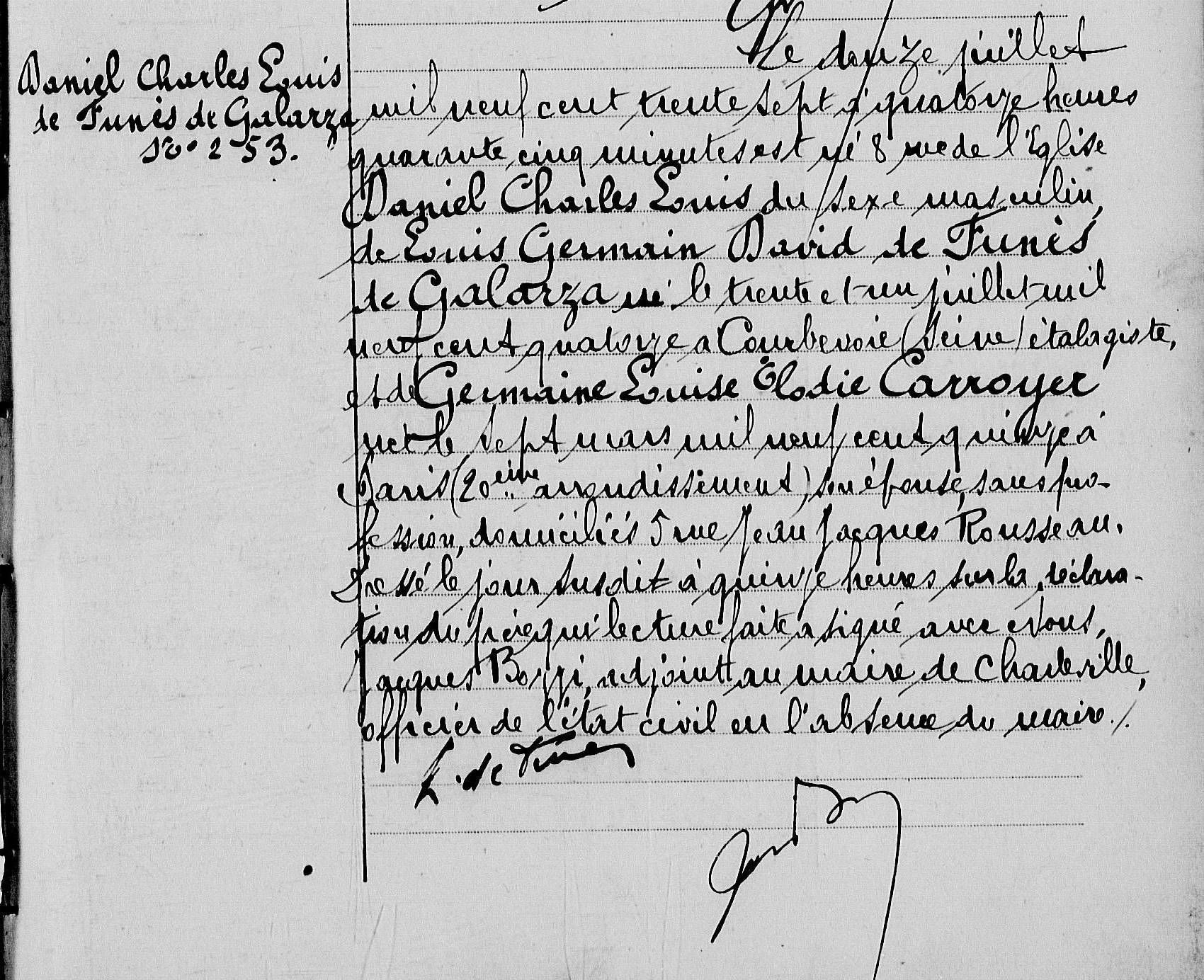 C’est ainsi qu’il arrive avec sa première femme, Germaine Carroyer, à Charleville à la fin de l’année 1936. Il est étalagiste chez Devred puis travaille dans la clinique située au 8 rue de l’église dans laquelle naît son premier fils, Daniel, le 12 juillet 1937. Les Archives départementales des Ardennes conservent son acte de naissance (cote 2E105 193).
