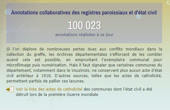 Chose promise, chose dûe ! Le nombre d’annotations ayant atteint 100 000, les Archives départementales ouvrent l’interrogation nominative. Qu’est-ce que cela signifie ? Vous pouvez désormais accéder, via la base de données, à tous les champs qui ont déjà été renseignés par vos soins.