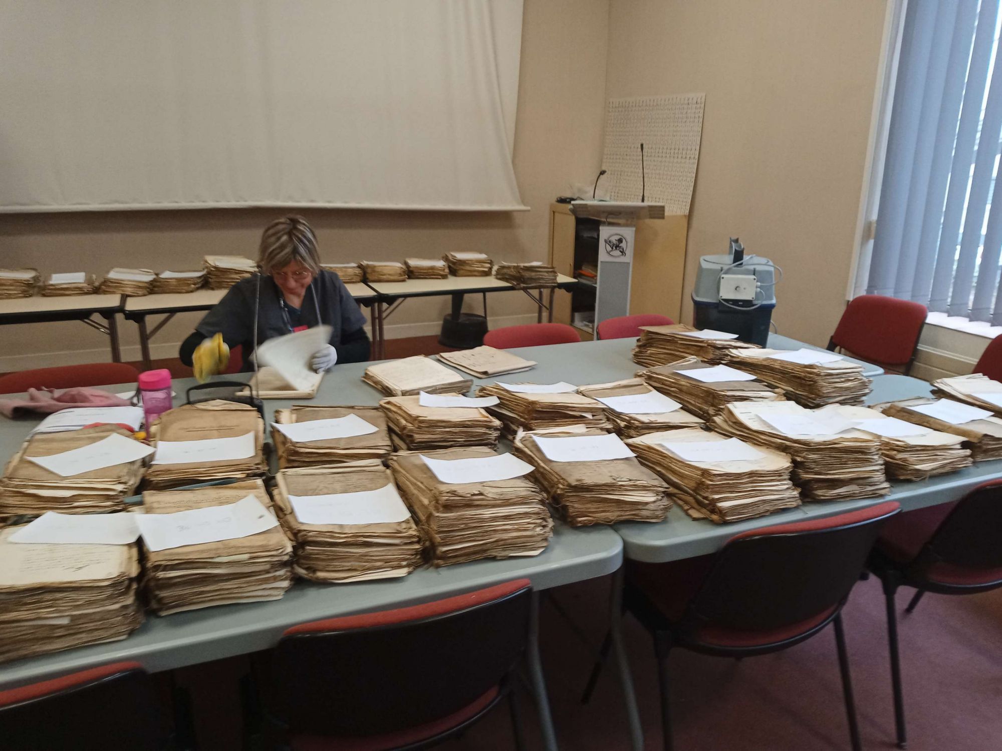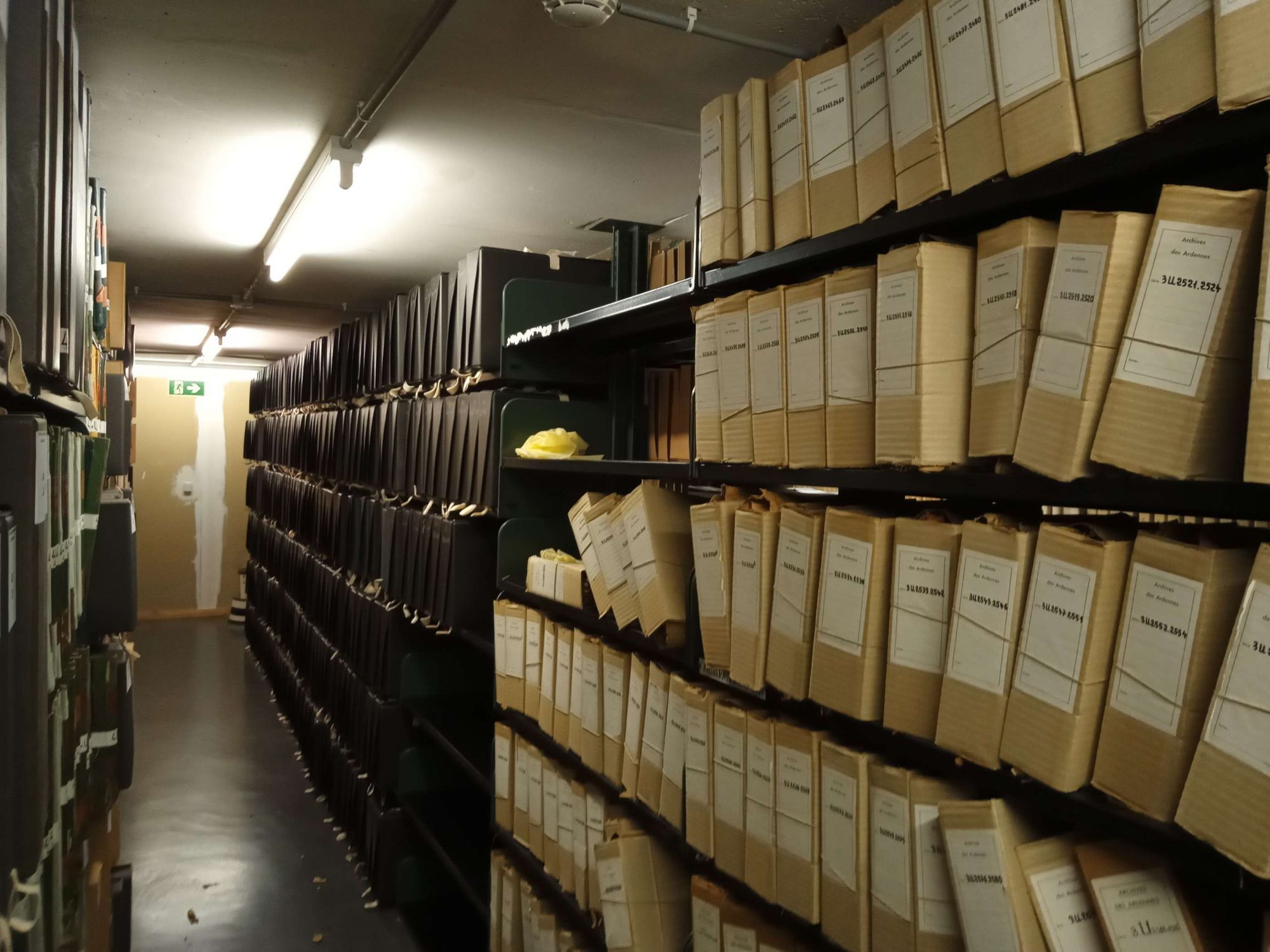 La quinzaine de fermeture aux Archives départementales qui s’est déroulée du 21 novembre au 2 décembre 2022 a permis à toute l’équipe d’entamer ensemble des travaux d’envergure. C’est ainsi que les dossiers de la cour d’assises des Ardennes de 1828 à 1914, les archives déposées de l’hôpital de Sedan et les plans de la WOL ont subi un changement de conditionnement leur assurant une conservation pérenne. Plus de 95 mètres linéaires de document et 281 plans ont été concernés par cette opération consistant en un déconditionnement, un dépoussiérage, un changement de pochette, l’utilisation de boites de conservation aux normes actuelles et enfin un étiquetage. Par ailleurs, dans la perspective d’optimiser la gestion de l’espace dans les magasins, plus de 56 mètres linéaires de comptes et budgets des communes du département ont été déplacés.