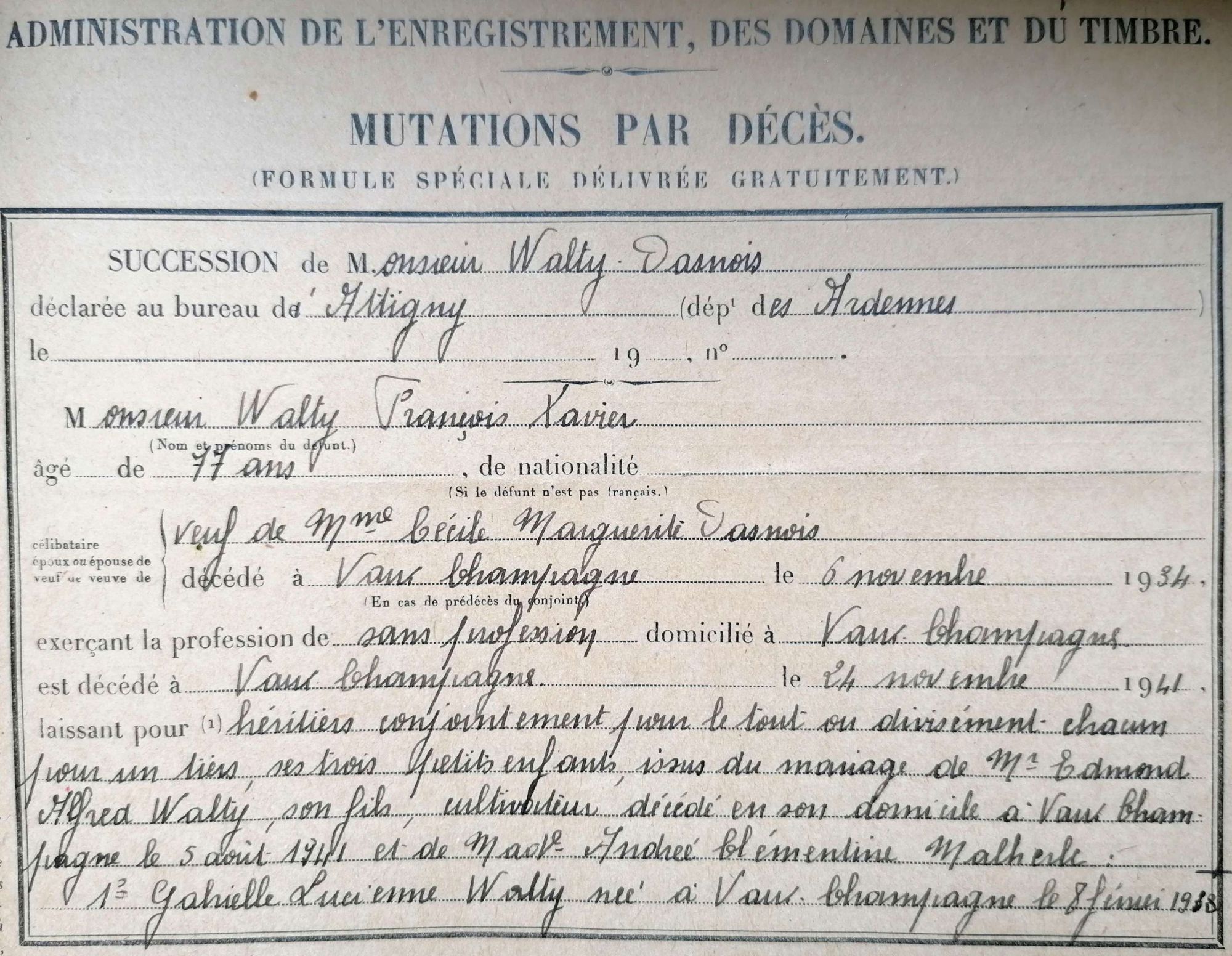 ... des anciens bureaux de l'Enregistrement du rethélois