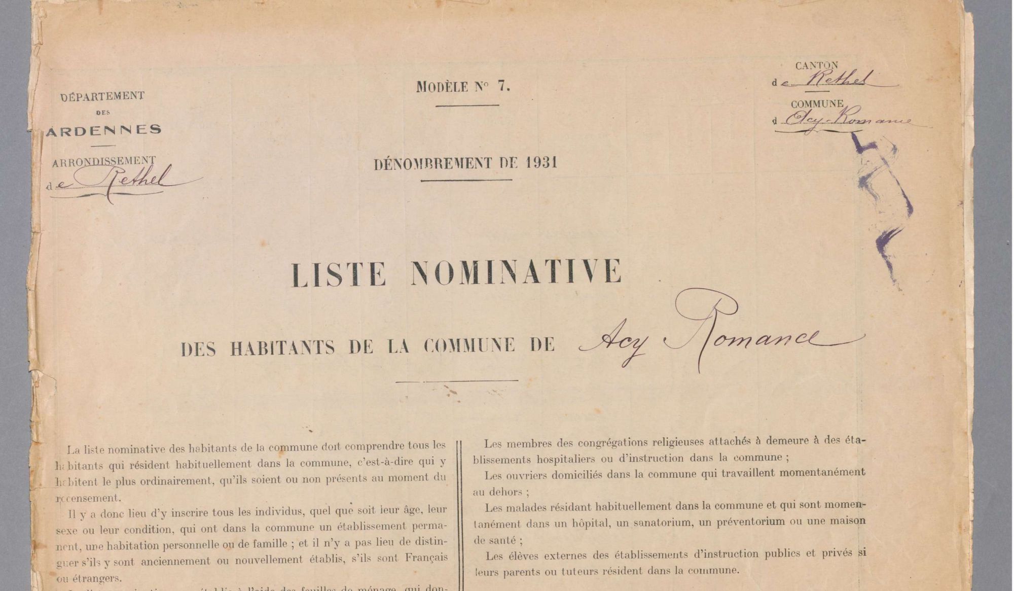 | Acy-Romance | EDEPOT/ACY-ROMANCE/F 1 | 1931 |