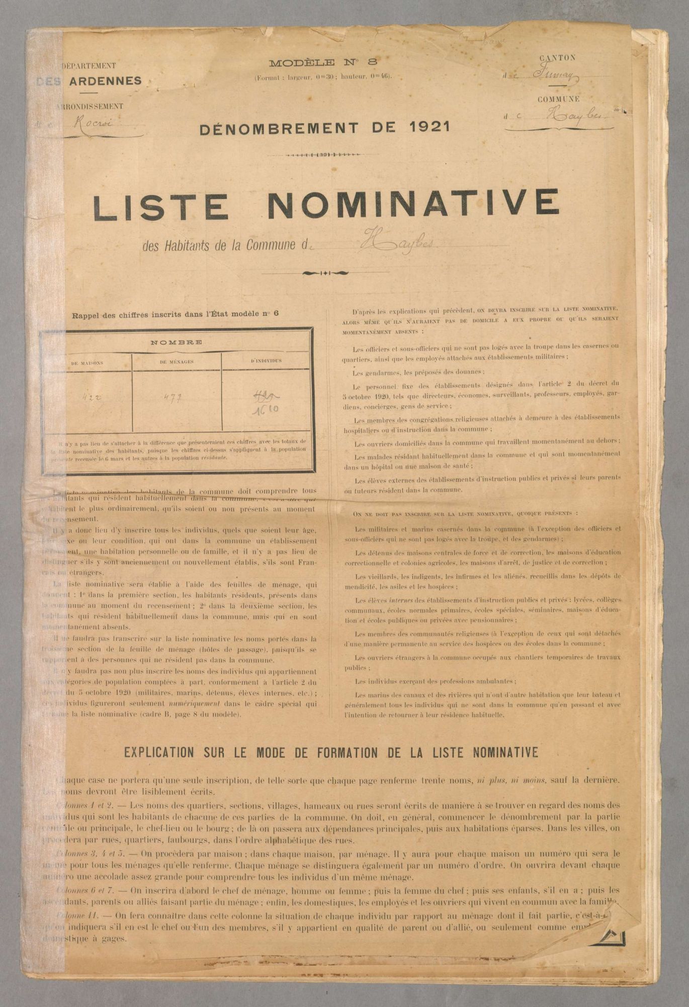 Nous vous proposons dès à présent de consulter ceux de la commune de Haybes avec les années 1921, 1926 et 1931.