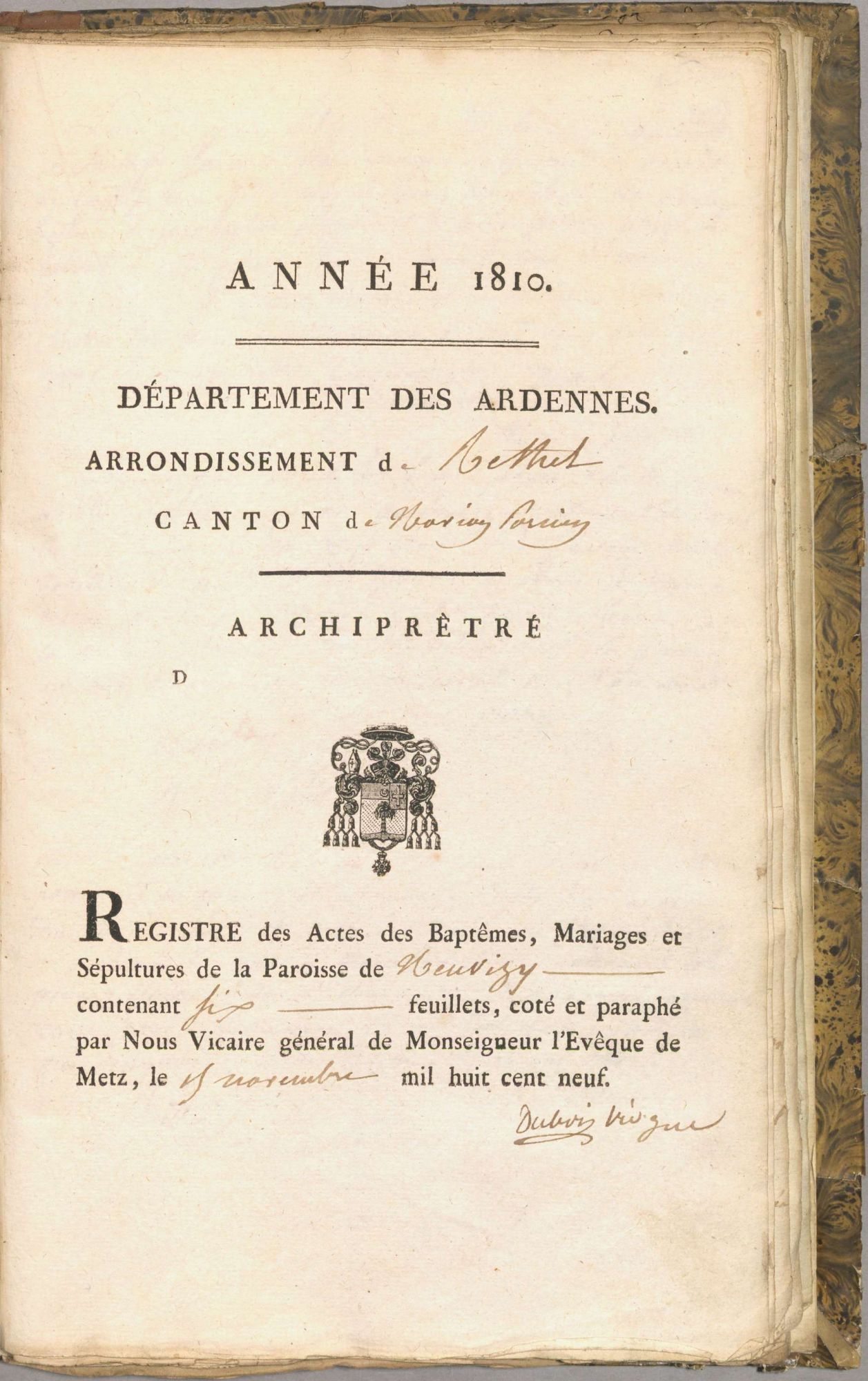 Nouveaux registres de catholicité pour la commune de Neuvizy, 1798 - 1845