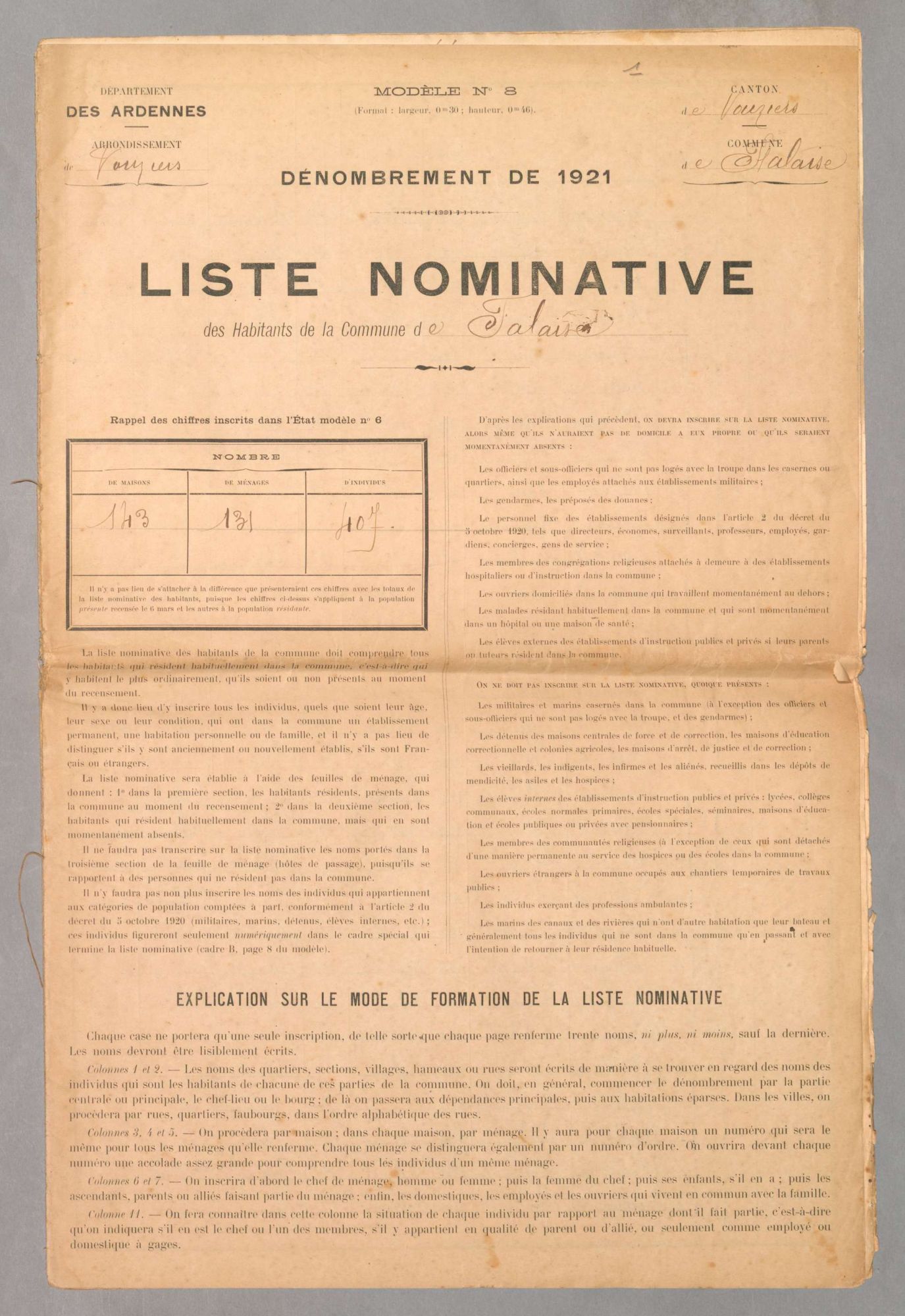 L’équipe des Archives départementales poursuit la numérisation et la mise en ligne des recensements de population conservés dans les dépôts d’archives communales afin de compléter ceux de la collection préfectorale de 1911, 1936 et 1946, déjà en ligne, et ainsi offrir de nouvelles sources pour l’histoire des familles ardennaises.