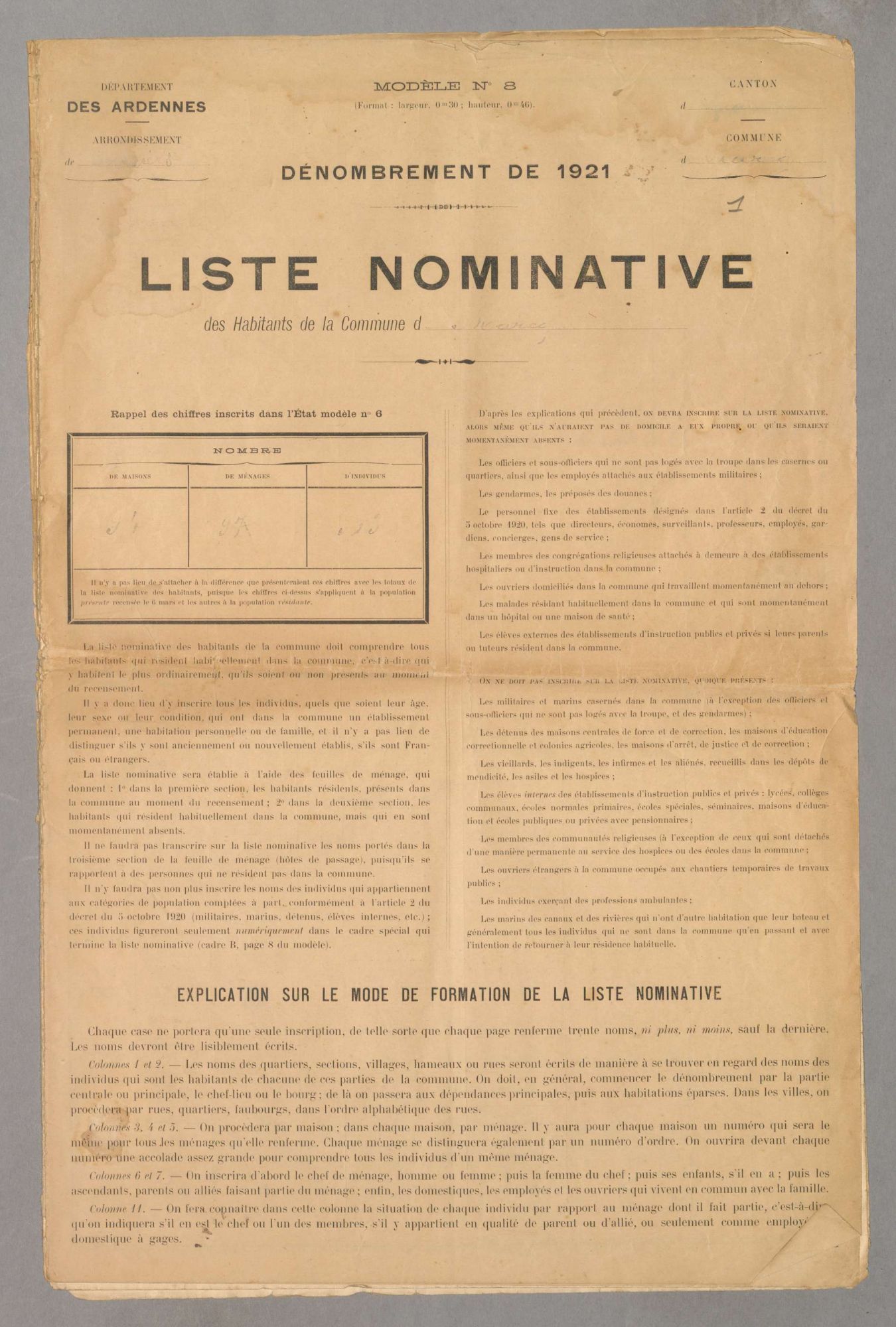| Mars-sous-Bourcq | EDEPOT/MARS-SOUS-BOURCQ/F 1 | 1921 | 1921 | FRAD008_EDEPOT_MARS-SOUS-BOURCQ_F01 | FRAD008_EDEPOT_MARS-SOUS-BOURCQ_F01_00001.jpg | FRAD008_EDEPOT_MARS-SOUS-BOURCQ_F01_00008.jpg |