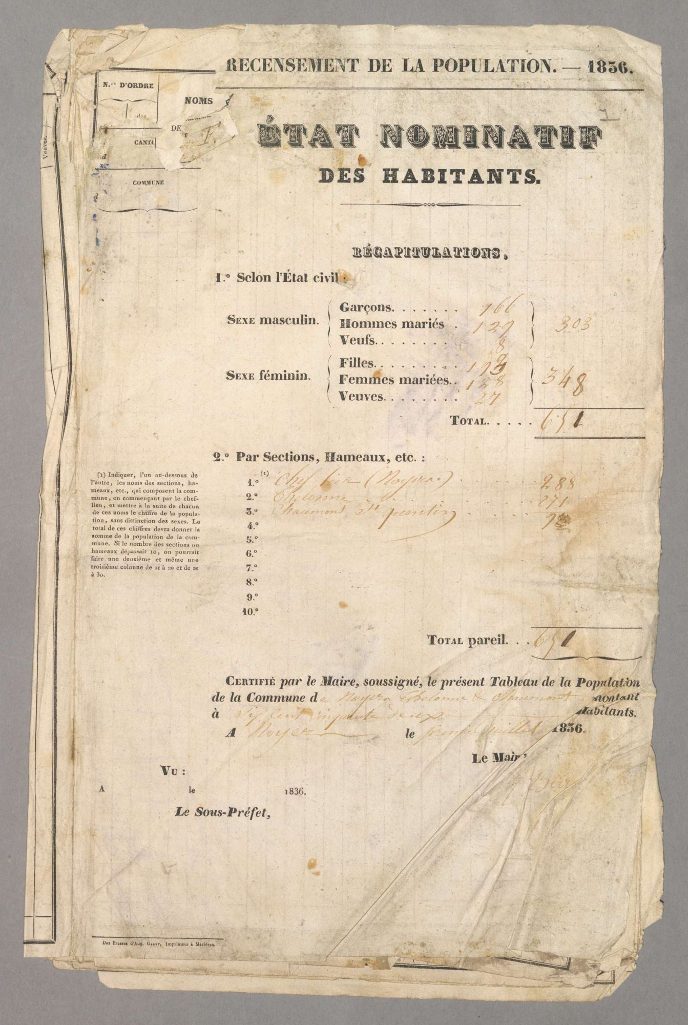 L’équipe des Archives départementales poursuit la numérisation et la mise en ligne des recensements de population conservés dans les dépôts d’archives communales afin de compléter ceux de la collection préfectorale de 1911, 1936 et 1946, déjà en ligne, et ainsi offrir de nouvelles sources pour l’histoire des familles ardennaises.