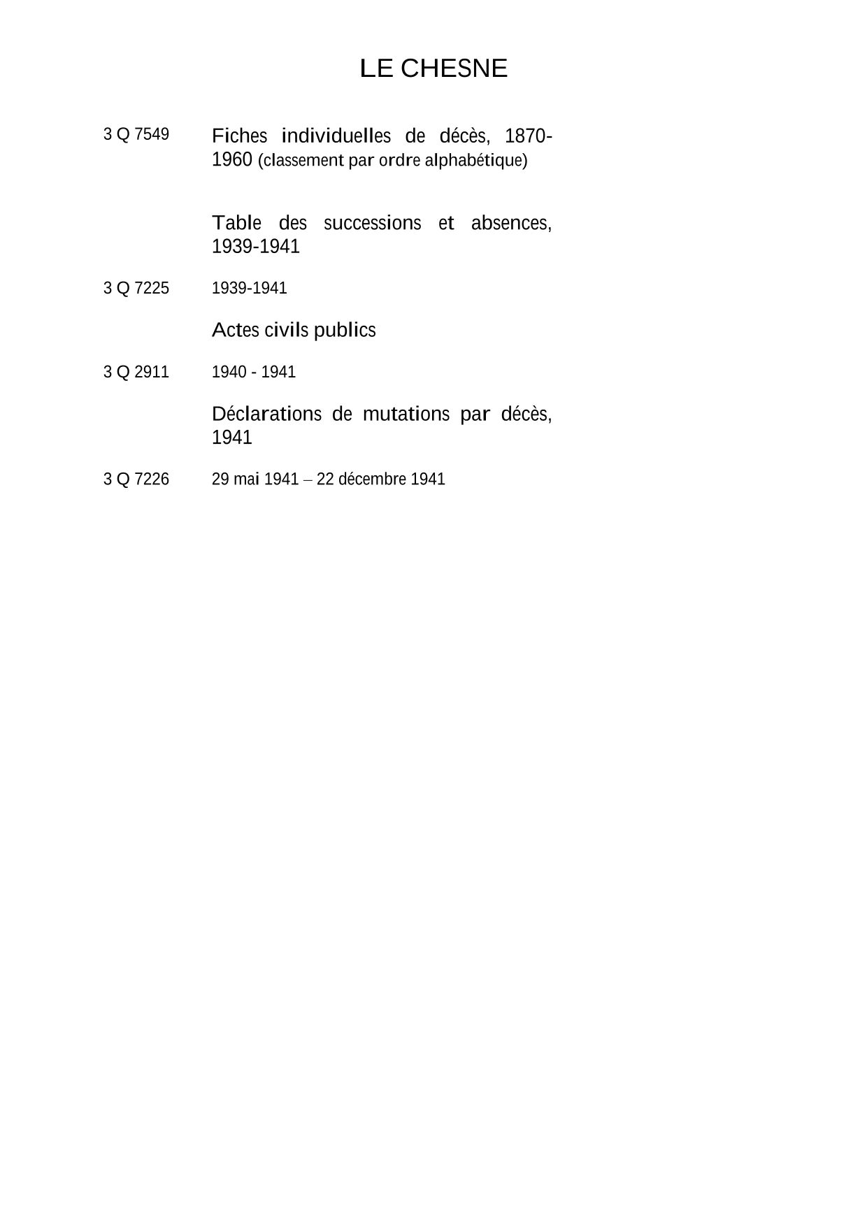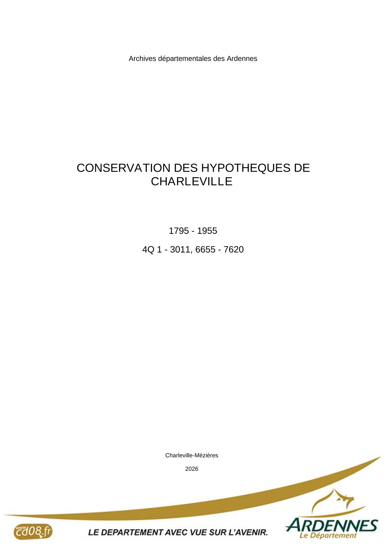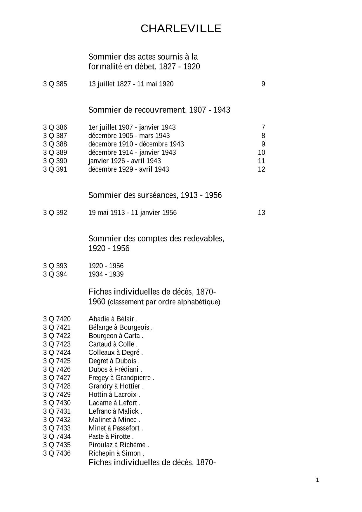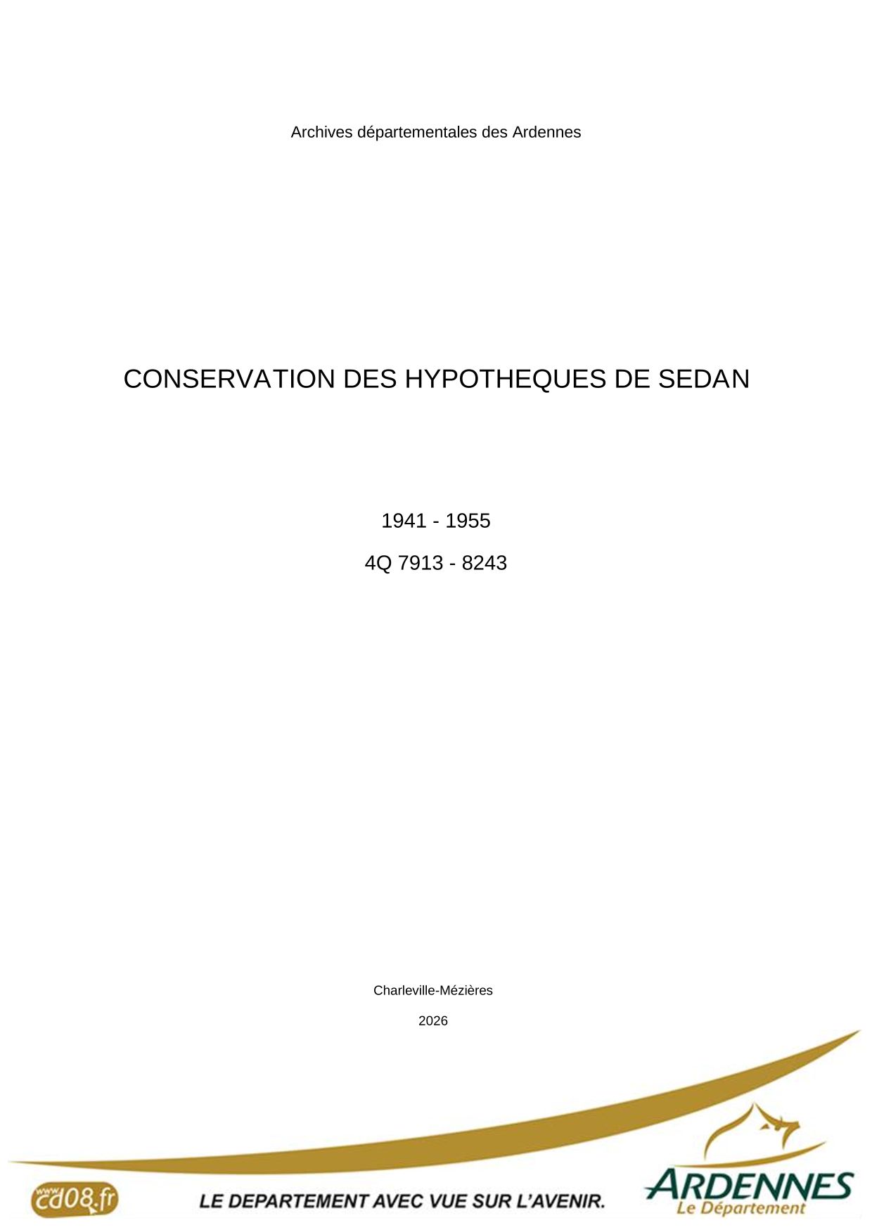Attention : les archives de la conservation des hypothèques de Sedan antérieures à 1941 ont été détruites pendant la Seconde Guerre mondiale.