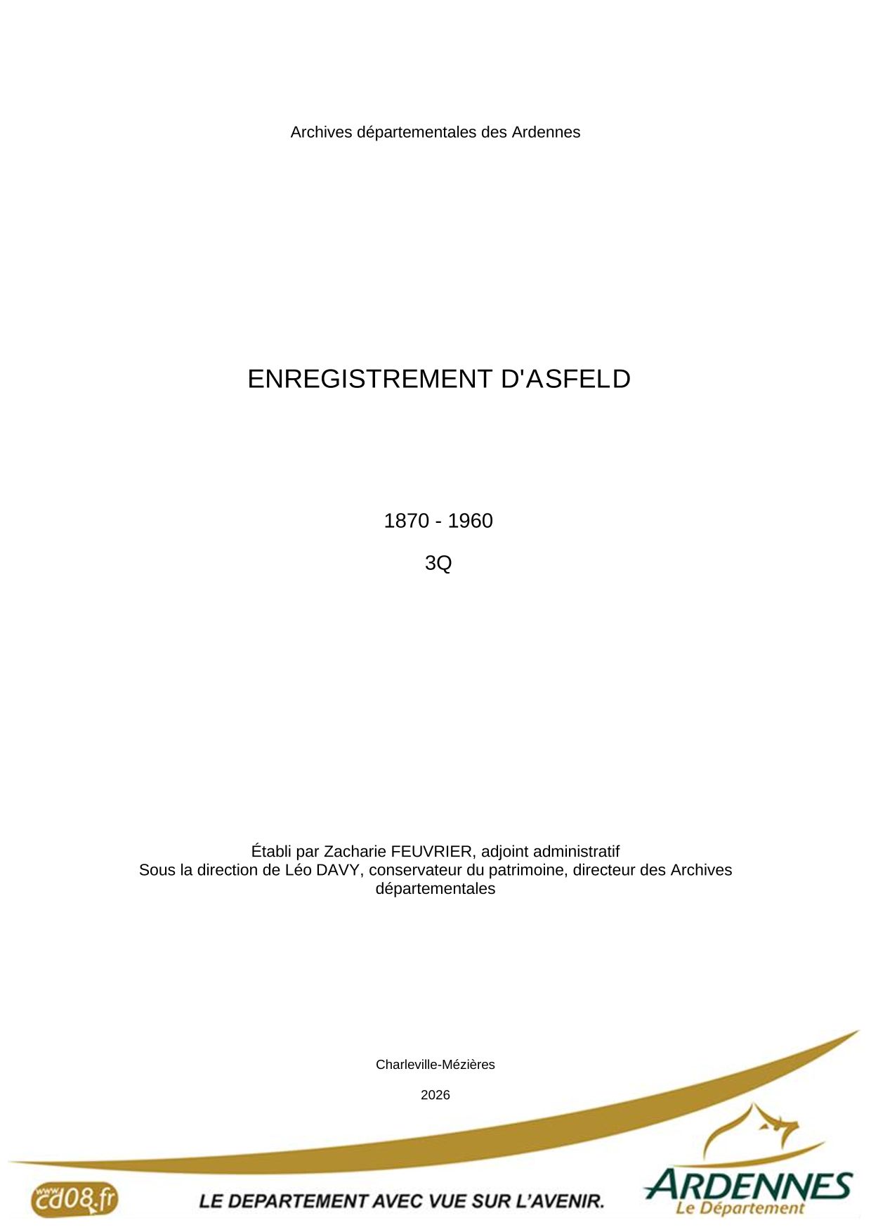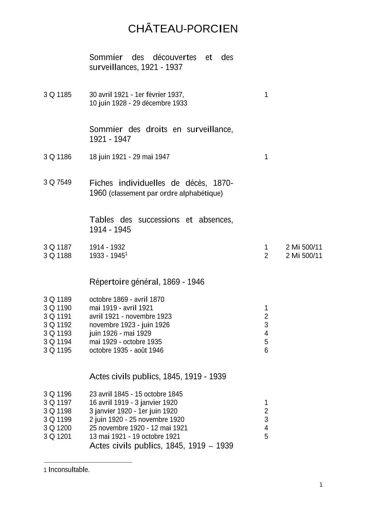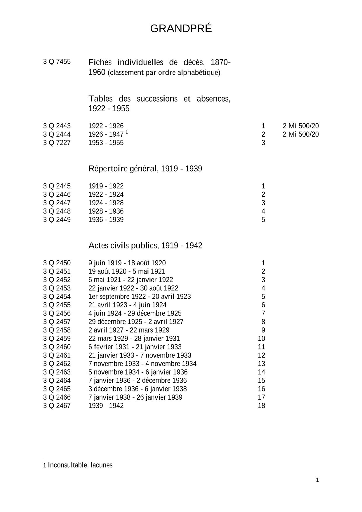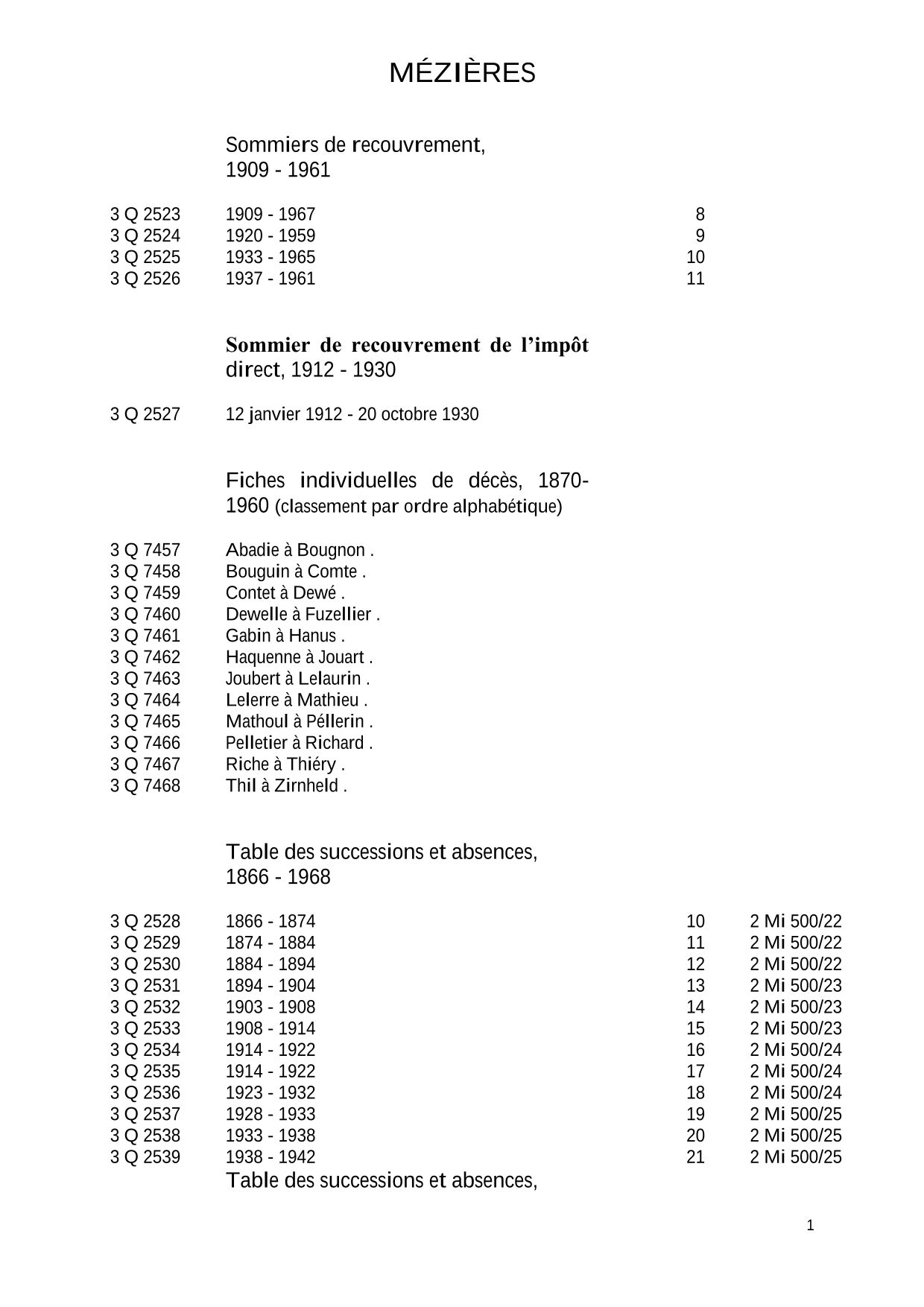 Attention : les archives de la conservation des hypothèques de Sedan antérieures à 1941 ont été détruites pendant la Seconde Guerre mondiale.