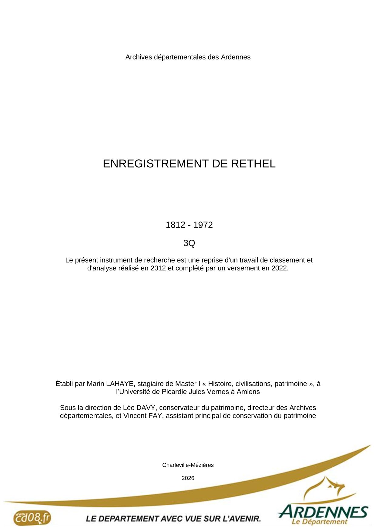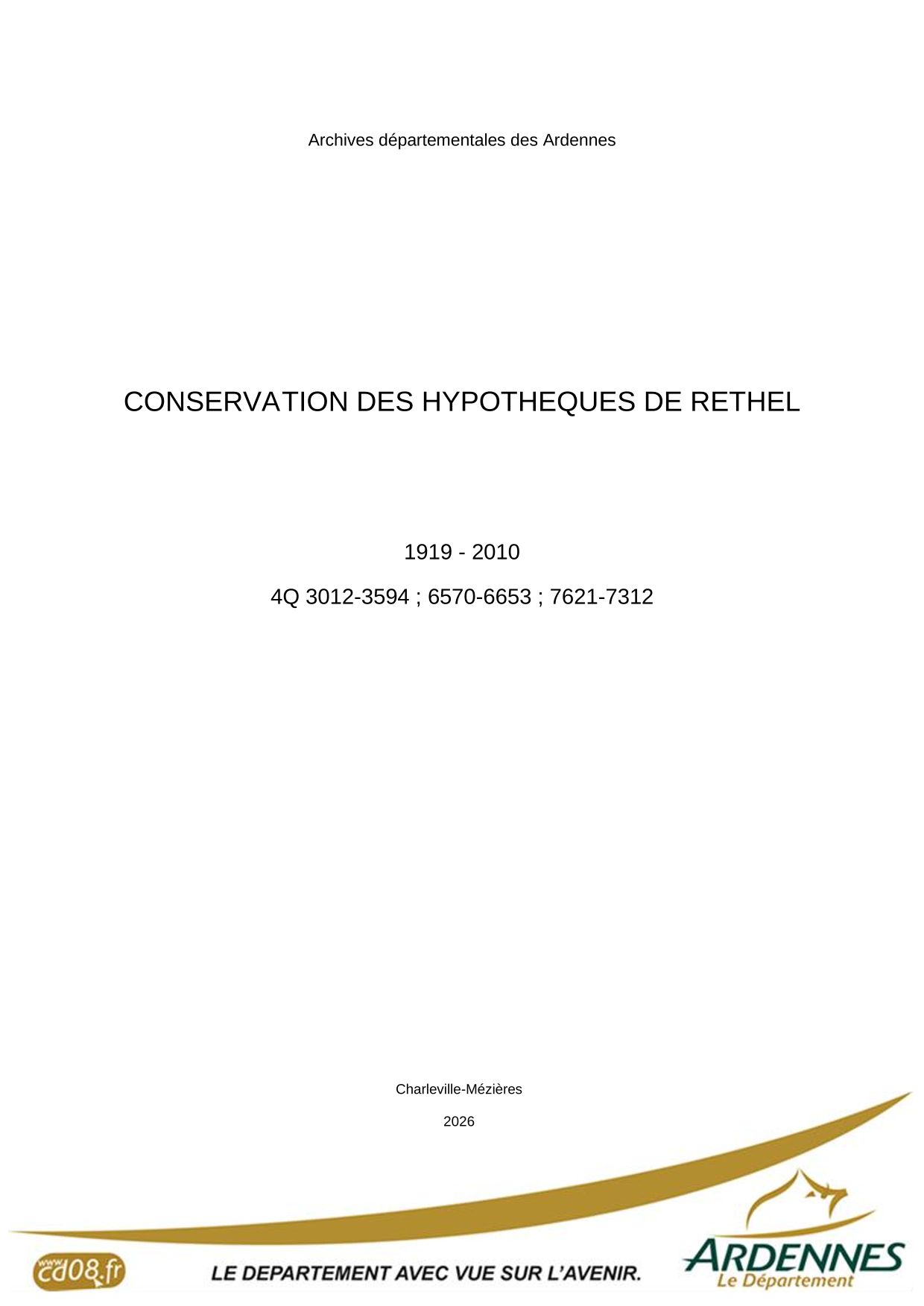 Attention : les archives de la conservation des hypothèques de Rethel antérieures à 1919 ont été détruites pendant la Première Guerre mondiale.