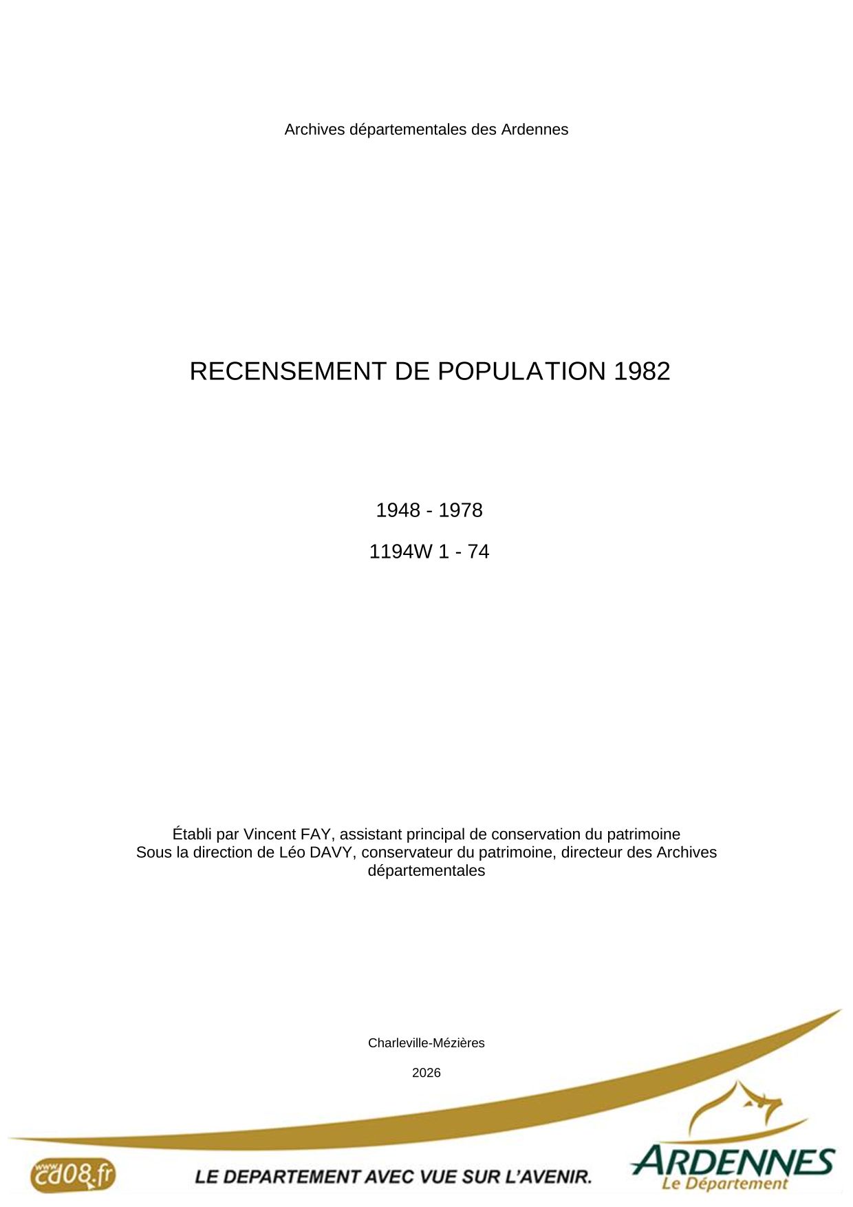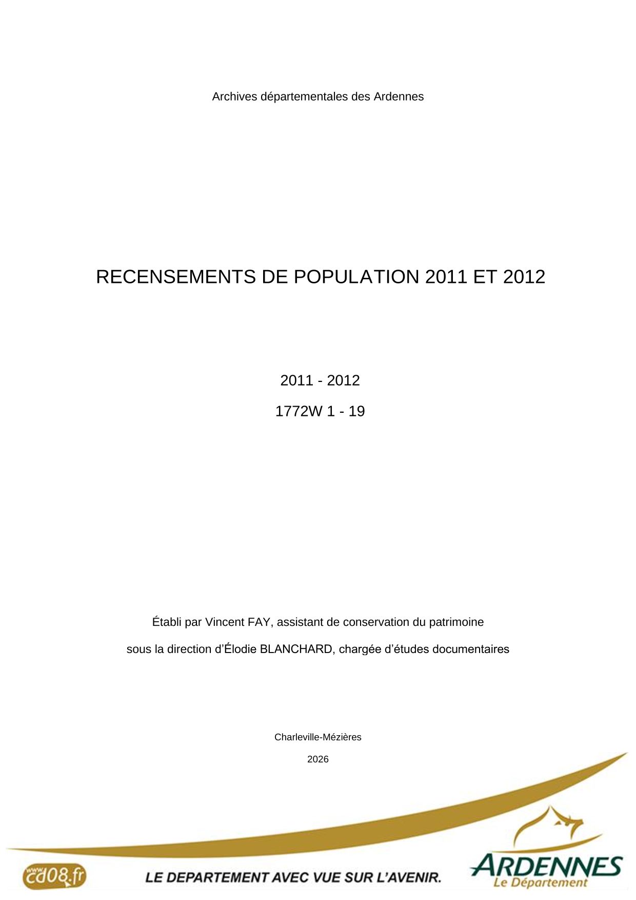 Population État civil 2E - Registres du greffe.pdf (4.6 Mo) 6M - Affaires diverses d'état civil.pdf (155.7 Ko) Recensements de la population 6M - Recensements de population 1911 et 1936.pdf (194.0 Ko) 30W - Recensements de population 1946-1975.pdf (227.7 Ko) 47W - Recensement de population 1946.pdf (174.4 Ko) 48W - Recensement de population 1954.pdf (331.2 Ko) 49W - Recensement de population 1962.pdf (185.1 Ko) 50W - Recensement de population 1968.pdf (195.1 Ko) 1194W - Recensement de population 1982.pdf (185.1 Ko) 1622W - Recensements de population 1999, 2004, 2005.pdf (209.6 Ko) 1658W - Recensements de population 2006-2007.pdf (174.8 Ko) 1683W - Recensements de population 1999, 2004 et 2008.pdf (218.1 Ko) 1736W - Recensements de population 1999, 2009 et 2010.pdf (180.7 Ko) 1772W - Recensements de population 2011 et 2012.pdf (171.6 Ko) 1830W - Recensements de population 2004-2008 et 2013-2015.pdf (228.3 Ko) Titres d'identité 127W - Service des passeports.pdf (154.3 Ko) 1511W - Passeports et cartes nationales d'identité.pdf (208.4 Ko) Droits des femmes 1719W - Mission départementale aux droits des femmes et à l'égalité.pdf (176.0 Ko)