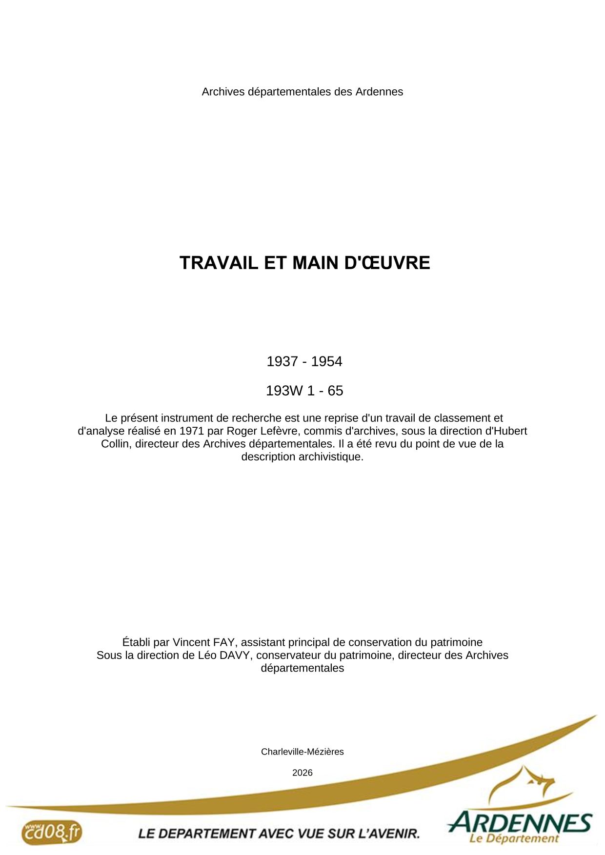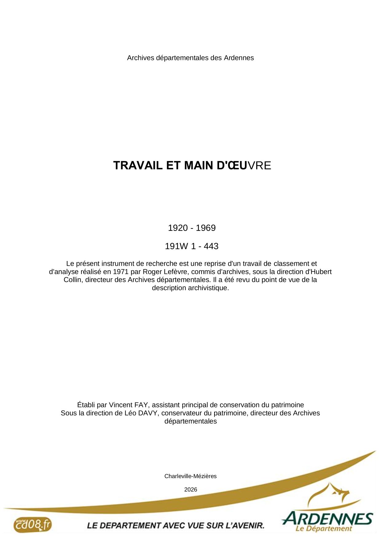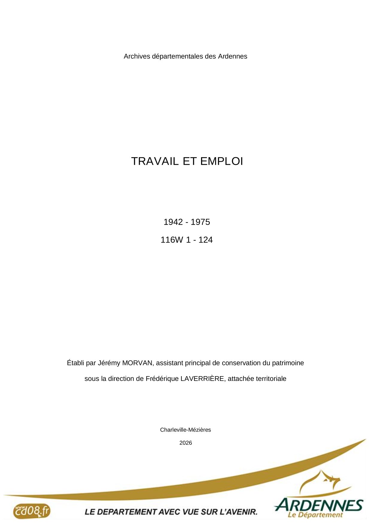 Travail, emploi Série E - Communautés de métiers, confréries, livres de commerce (626.5 Ko) Travail 170W - Indemnisation du personnel des établissements industriels fermés en temps de guerre.pdf (424.1 Ko) 1082W - Salaires et salariés de l'industrie.pdf (397.9 Ko) 1597W - Syndicats professionnels.pdf (427.3 Ko) 1681W - Centre de gestion de la fonction publique territoriale des Ardennes.pdf (649.4 Ko) 1821W - Centre de gestion de la fonction publique territoriale des Ardennes.pdf (426.0 Ko) Inspection du travail 10M - Travail et main d'oeuvre.pdf (513.0 Ko) 116W - Travail et emploi.pdf (505.2 Ko) 191W - Travail et main d'oeuvre.pdf (678.6 Ko) 193W - Travail et main d'oeuvre.pdf (188.2 Ko) 1783W - Inspection du travail.pdf (444.0 Ko) 1795W - Dossiers d'entreprises et d'établissements.pdf (452.2 Ko) 1870W - Inspection du travail.pdf (449.8 Ko) Emploi 116W - Travail et emploi.pdf (588.5 Ko) 1803W - Maison de l'Emploi de Charleville-Mézières.pdf (404.1 Ko) 1886W - Ardennes Compétences territoriales.pdf (418.0 Ko) 1890W - Dispositifs d'aides aux entreprises relatives à l'emploi (1).pdf (416.1 Ko) Mission locale 1598W - Mission locale pour l'emploi des jeunes.pdf (402.6 Ko) 1661W - Mission locale de Charleville-Mézières.pdf (422.9 Ko) 1728W - Mission locale de Charleville-Mézières.pdf (411.4 Ko)